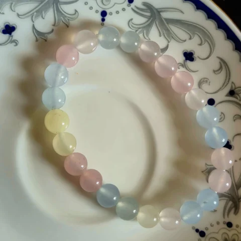 Morganite Gemstone Beaded Bracelet | Pastel Healing Crystal Bracelet | Calming Energy Stone Jewelry | Handmade Brass Elastic Bracelet by Symoru