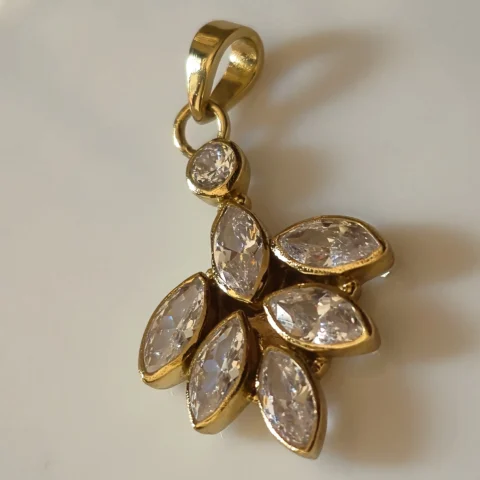 Gold Tone Brass Marquise CZ Flower Pendant | Diamond Look Floral Charm Necklace for Women | Elegant Statement Jewelry by Symoru