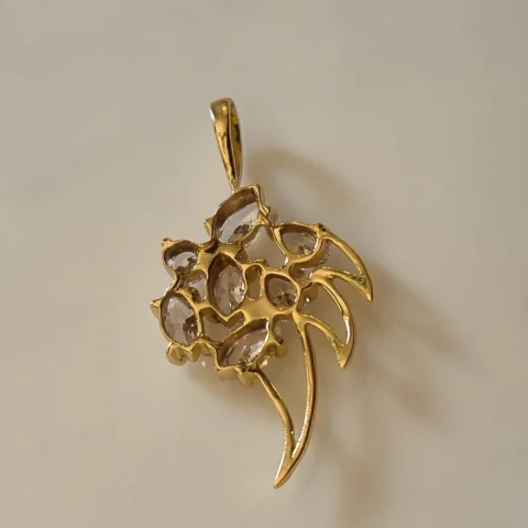 Gold Tone Brass Floral Leaf CZ Pendant | Marquise Cut Diamond Look Flower Charm Necklace Pendant for Women | Elegant Party & Bridal Jewelry by Symoru