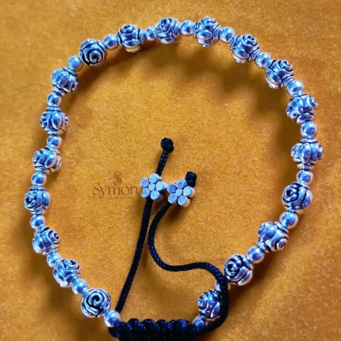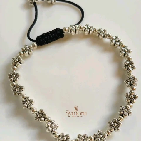 Handcrafted Oxidized Brass Flower Bead Bracelet | Adjustable Floral Boho Bracelet | Ethnic Vintage Jewelry for Women