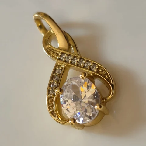 Gold Tone Brass Infinity Teardrop CZ Pendant | Elegant Diamond Look Solitaire Charm for Women | Minimal Luxury Necklace Pendant by Symoru