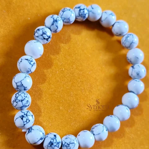 Natural Howlite Stone Bracelet • White Howlite Healing Crystal Beads • Stress Relief Bracelet • Unisex Gemstone Jewelry • Gift for Him & Her