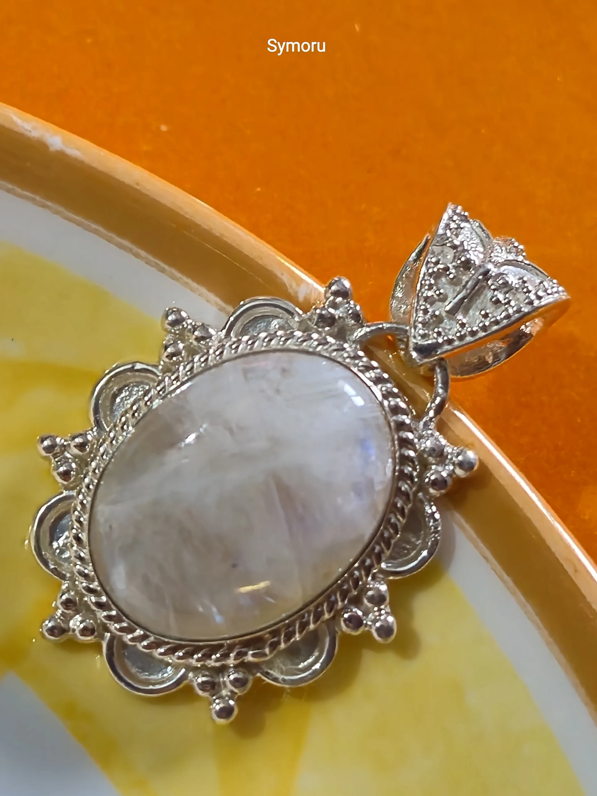 925 Sterling Silver Rainbow Moonstone Oval Pendant | Handmade Floral Silver Pendant by Symoru