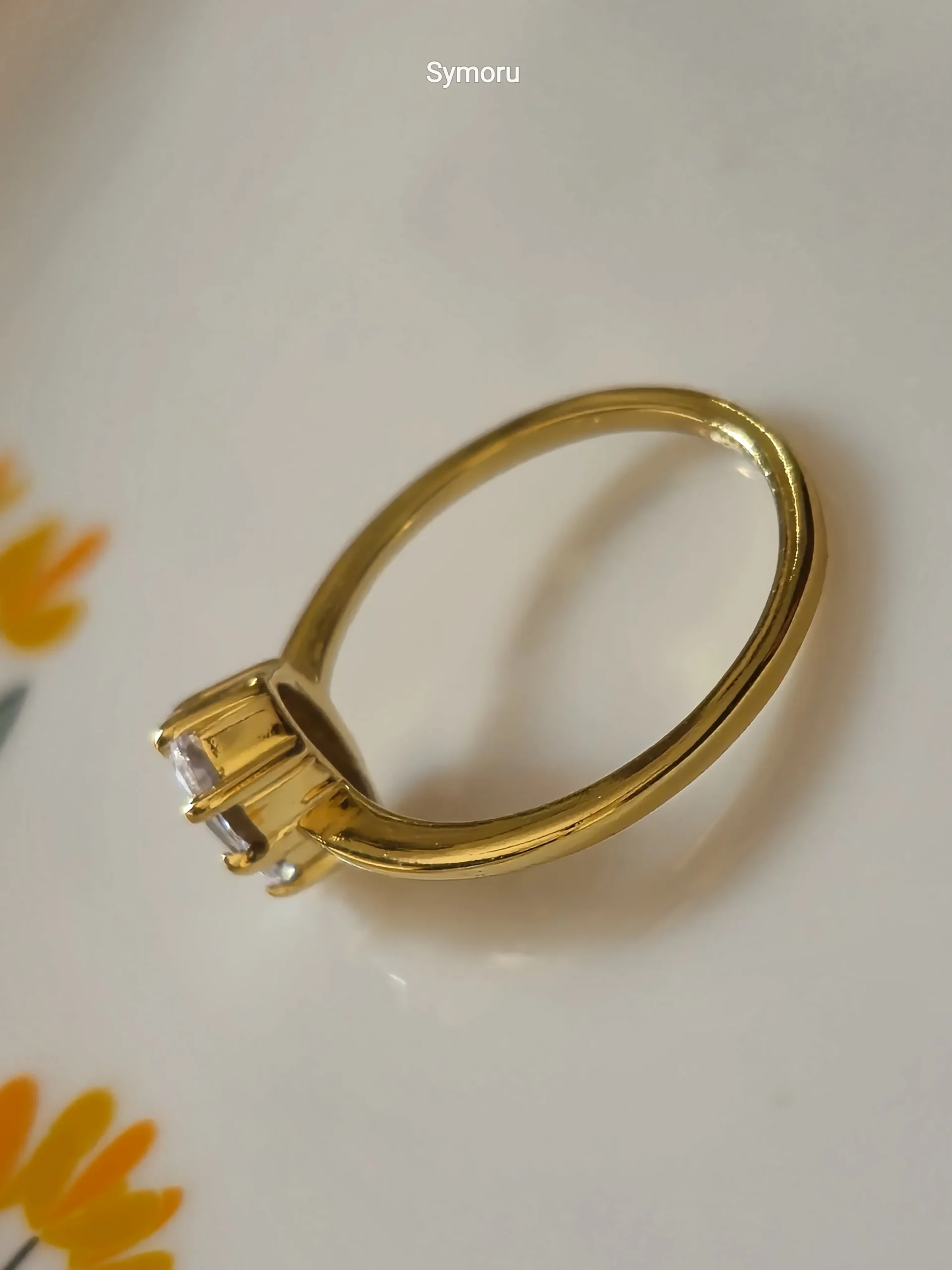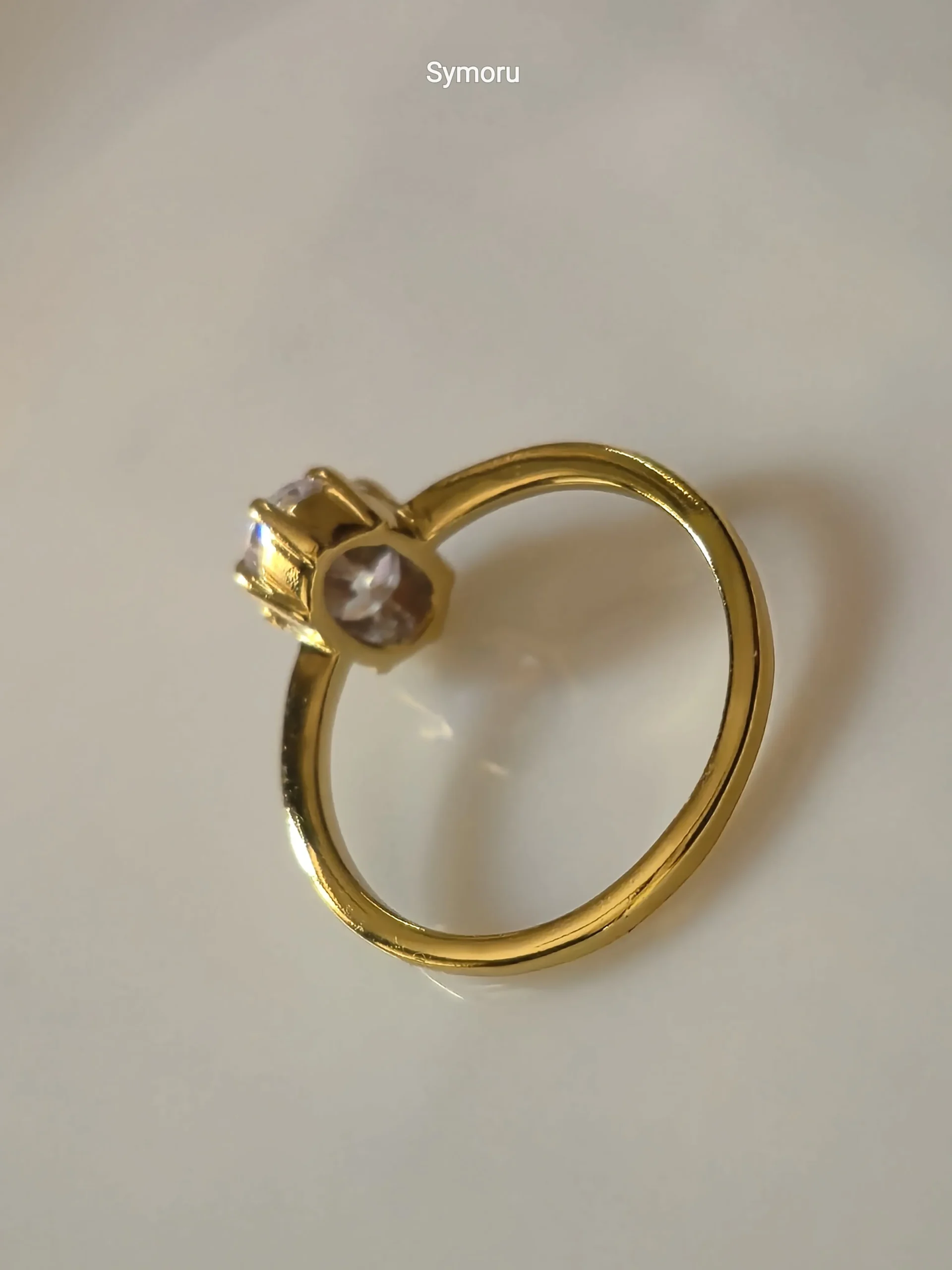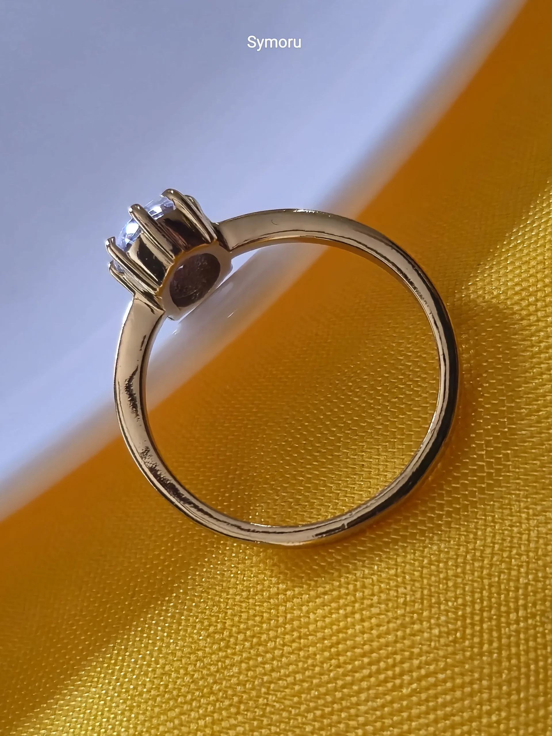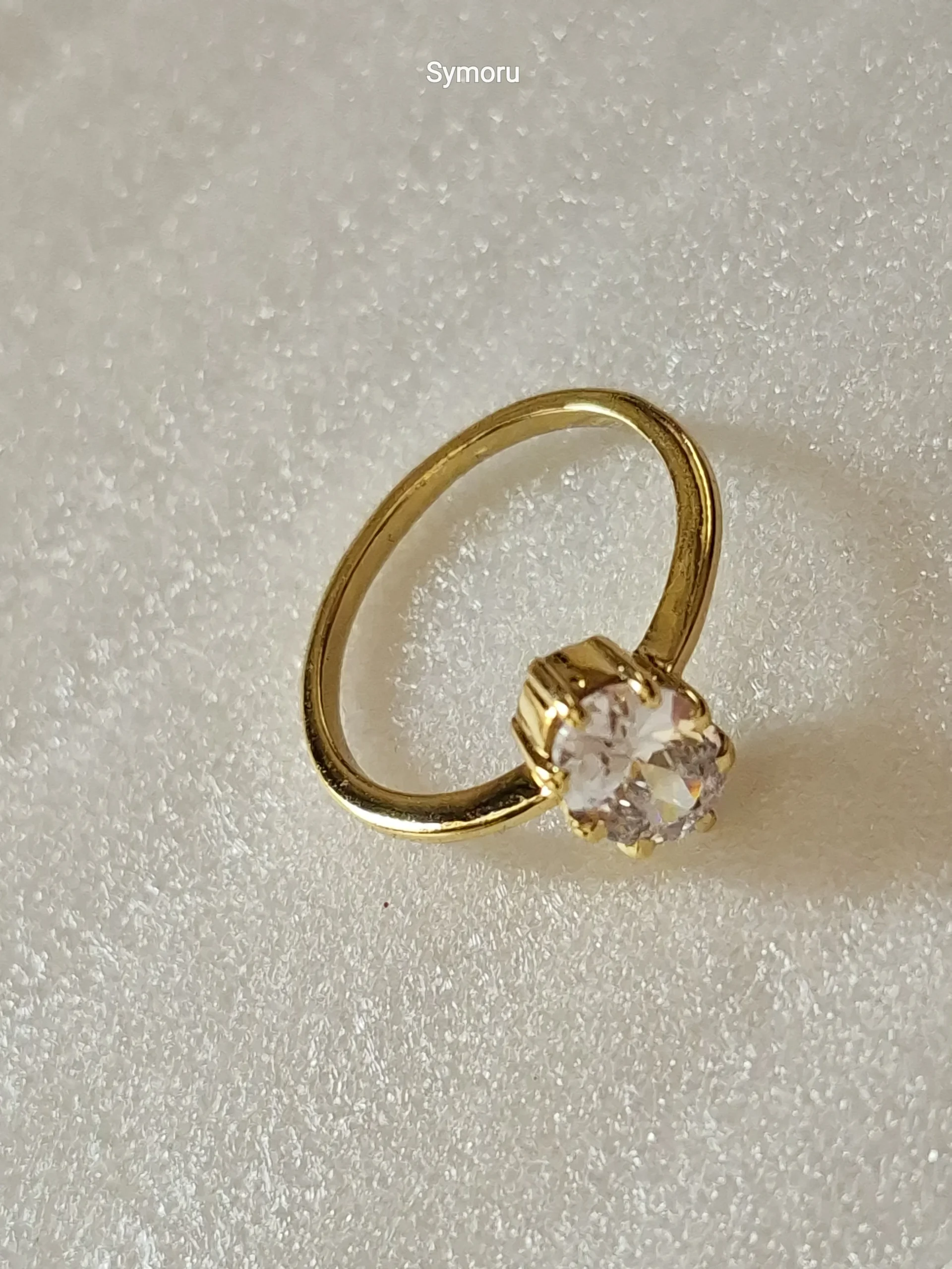 Classic Solitaire Gold Plated Brass Ring with Round Cut Stone | Elegant Minimal Engagement Ring | Symoru