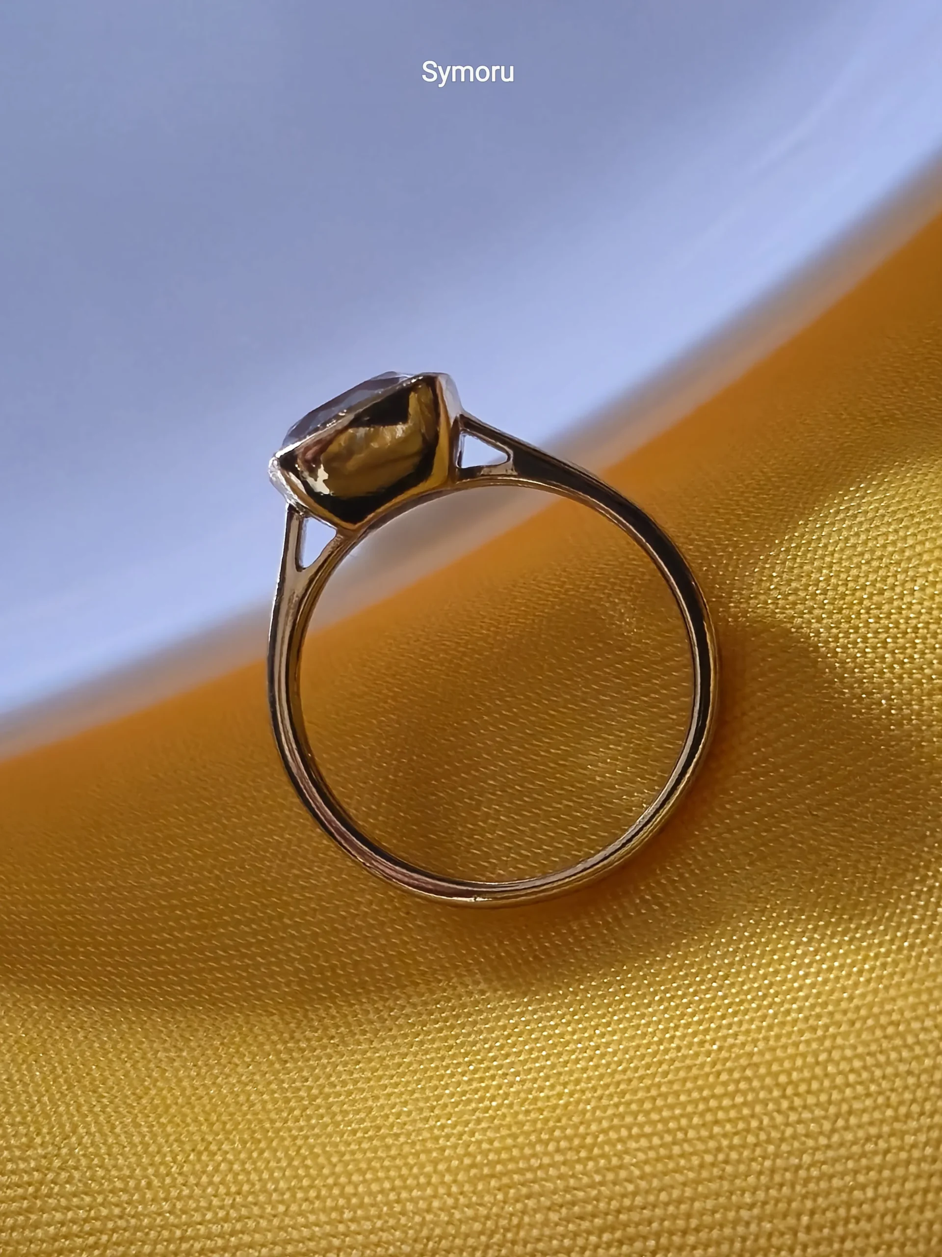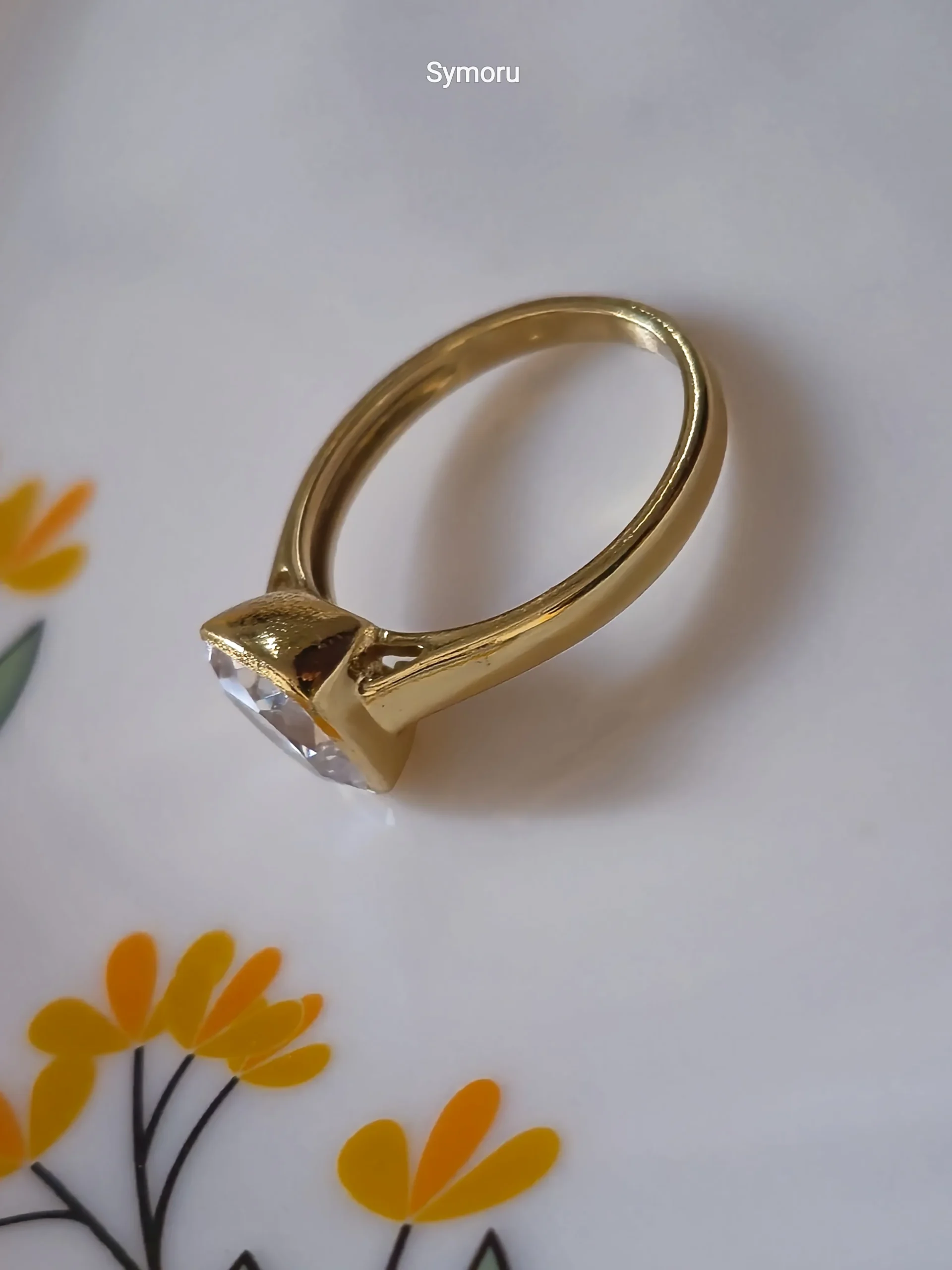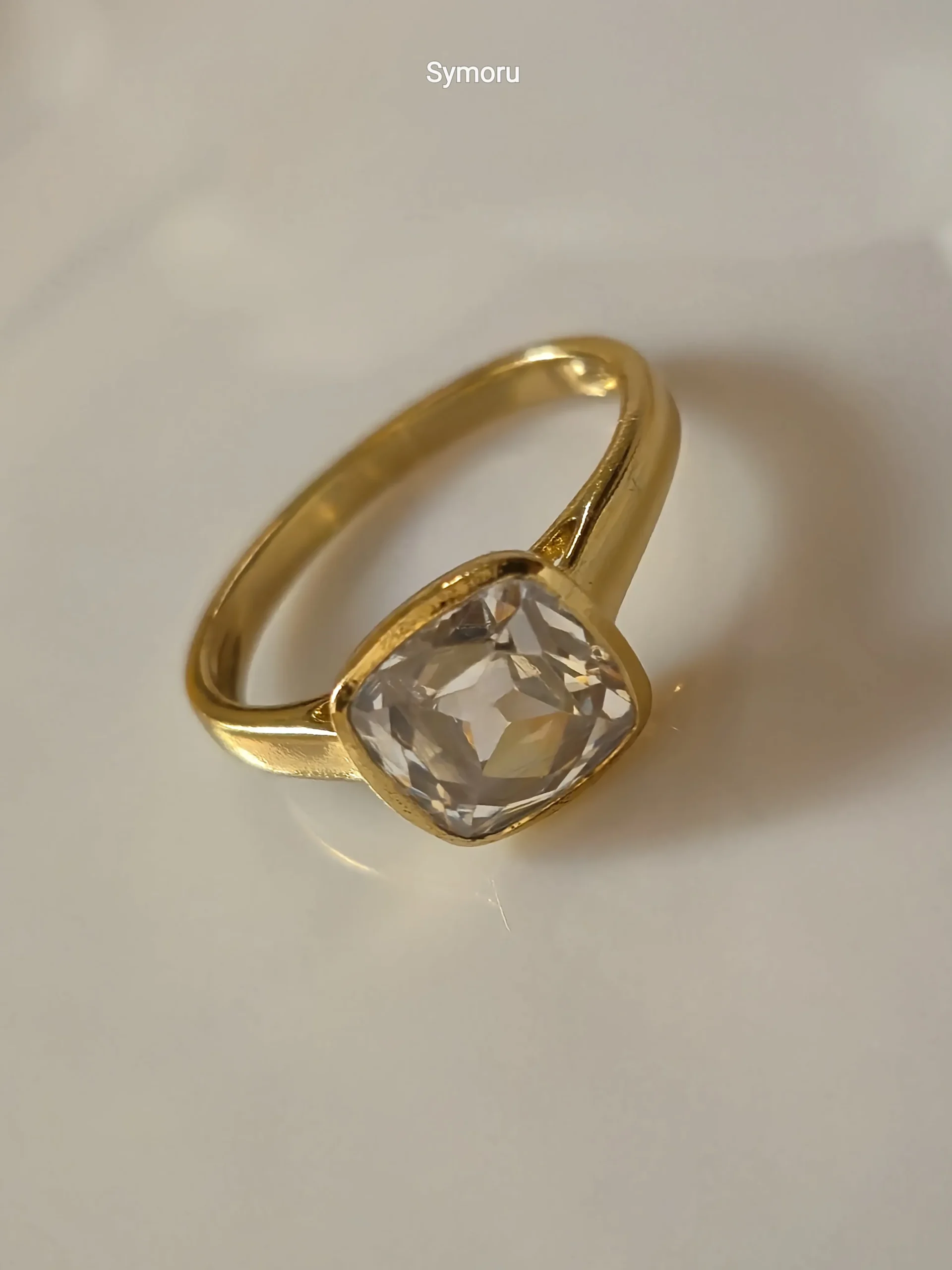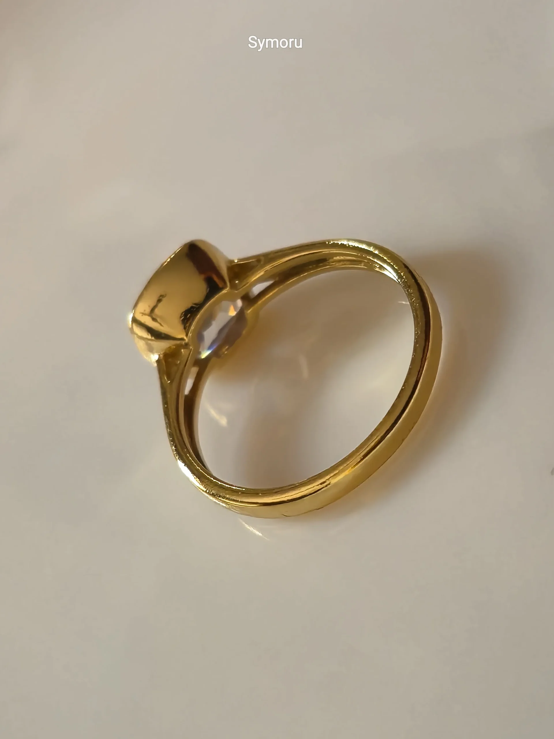 This elegant Symoru Cushion Cut Bezel Solitaire Ring features a beautifully faceted diamond-look cubic zirconia secured in a smooth gold bezel setting. The clean, modern frame enhances the brilliance of the cushion-cut stone while offering excellent protection and comfort for everyday wear.