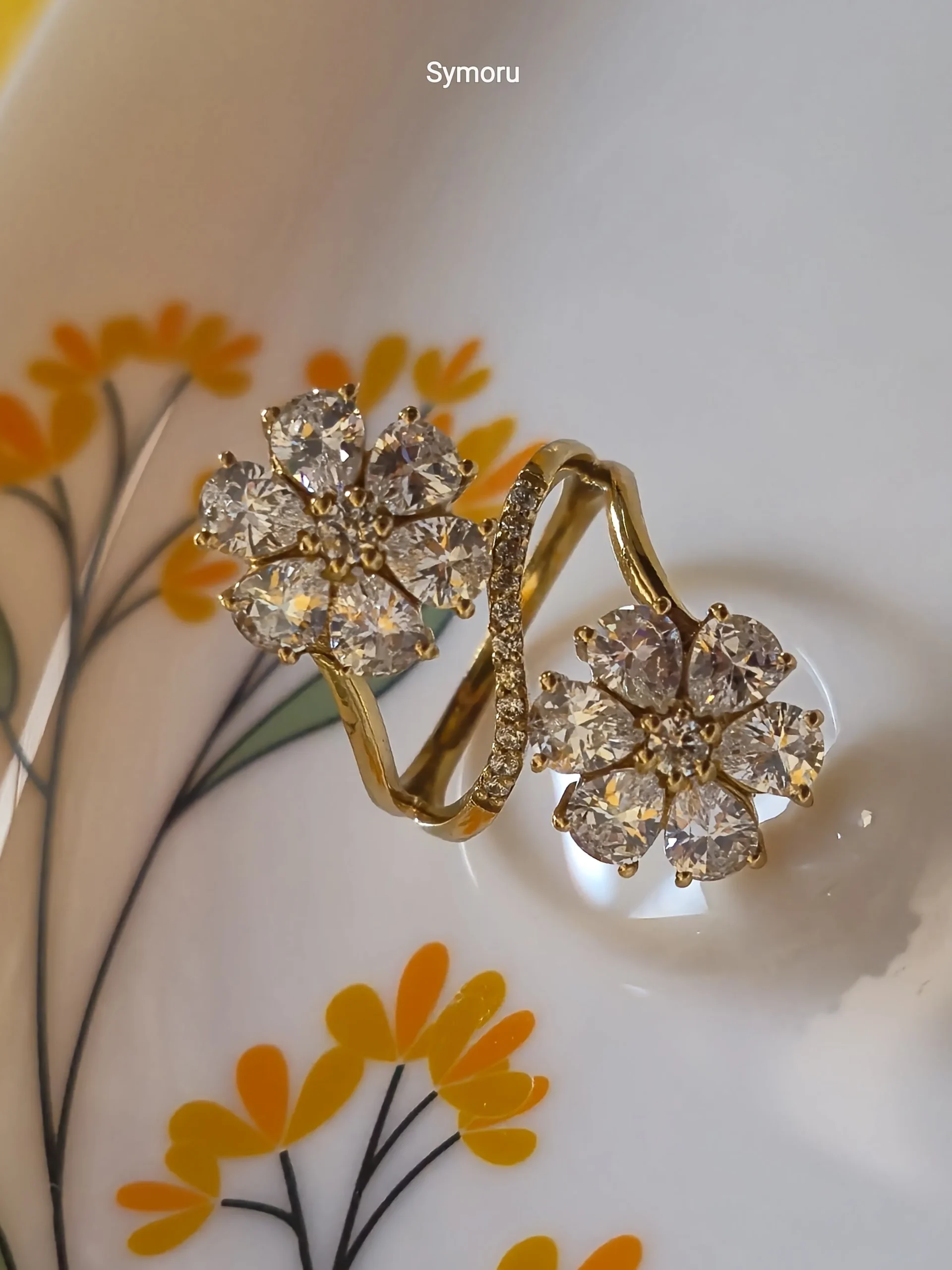 The twin floral heads symbolize beauty and elegance, making this ring perfect for statement styling, bridal wear, or luxury gifting.