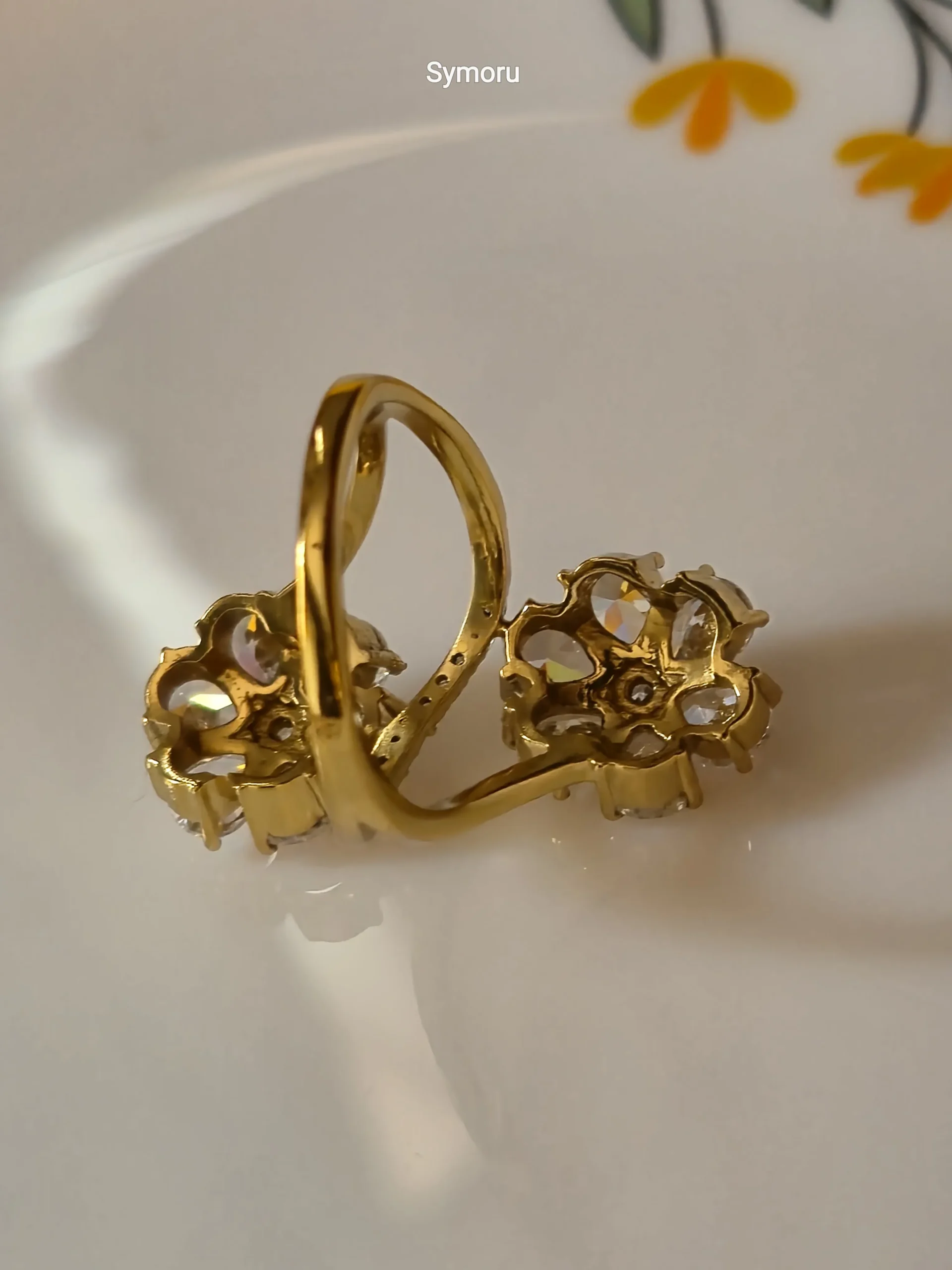 Dual Floral Cluster Cubic Zirconia Gold Adjustable Ring for Women | Diamond Look Open Ring | Symoru