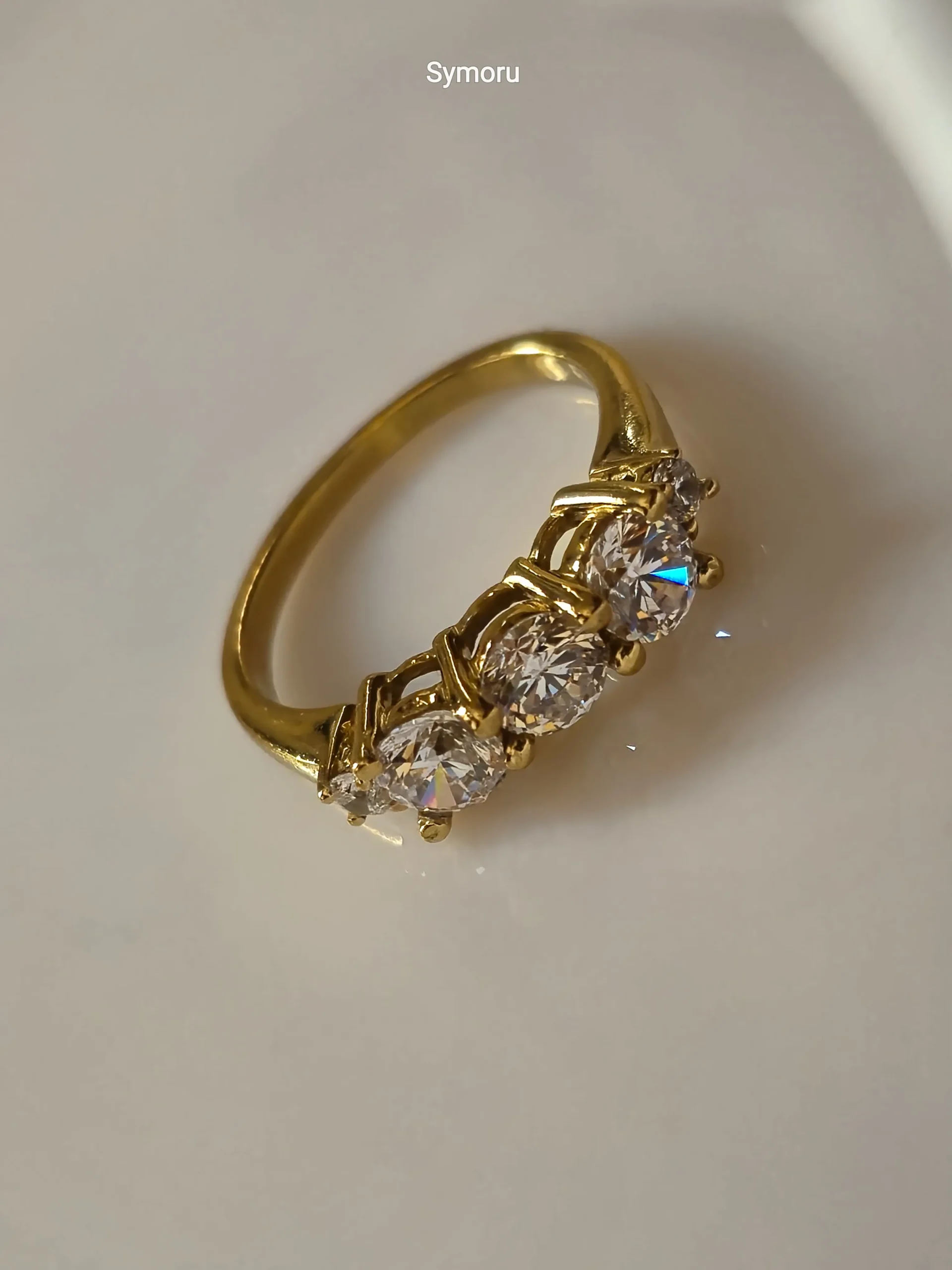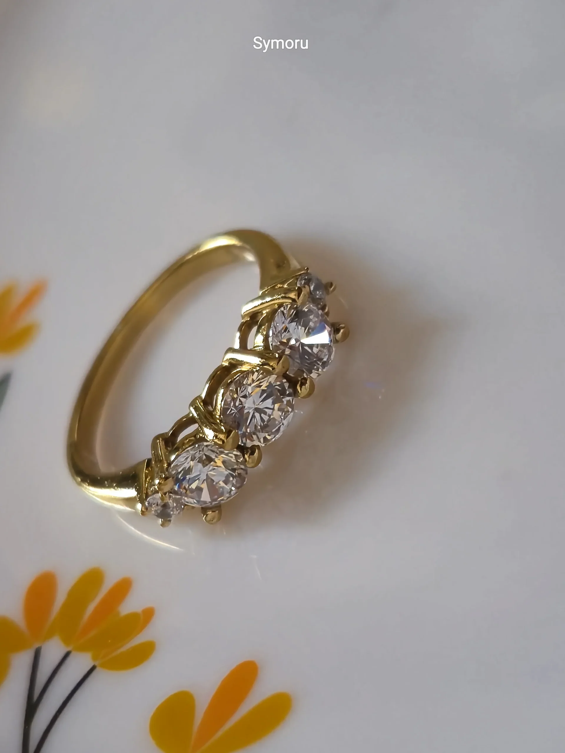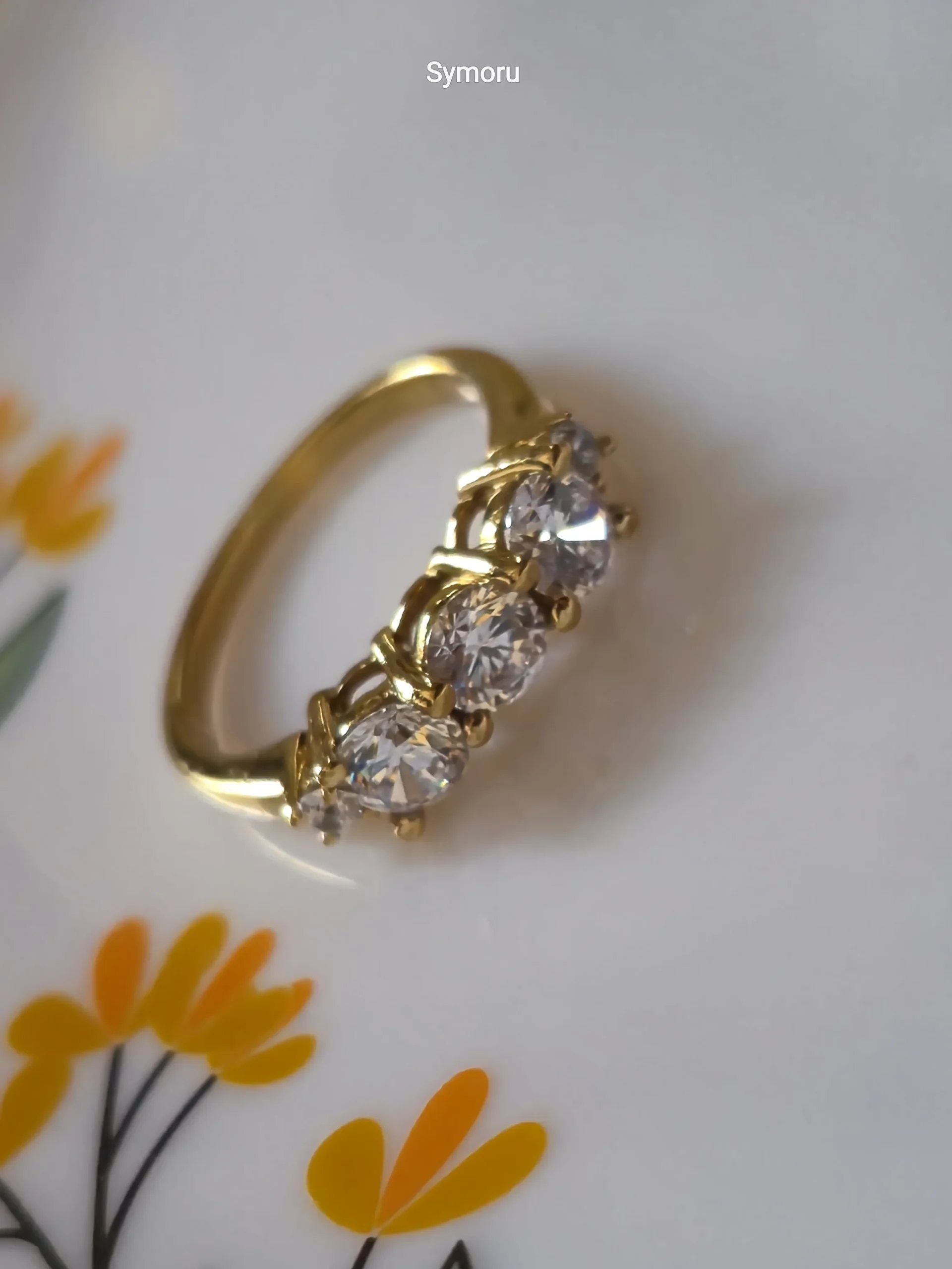 1 review for Elegant Three Stone CZ Gold Plated Brass Ring for Women | Diamond Look Daily & Party Wear | Symoru