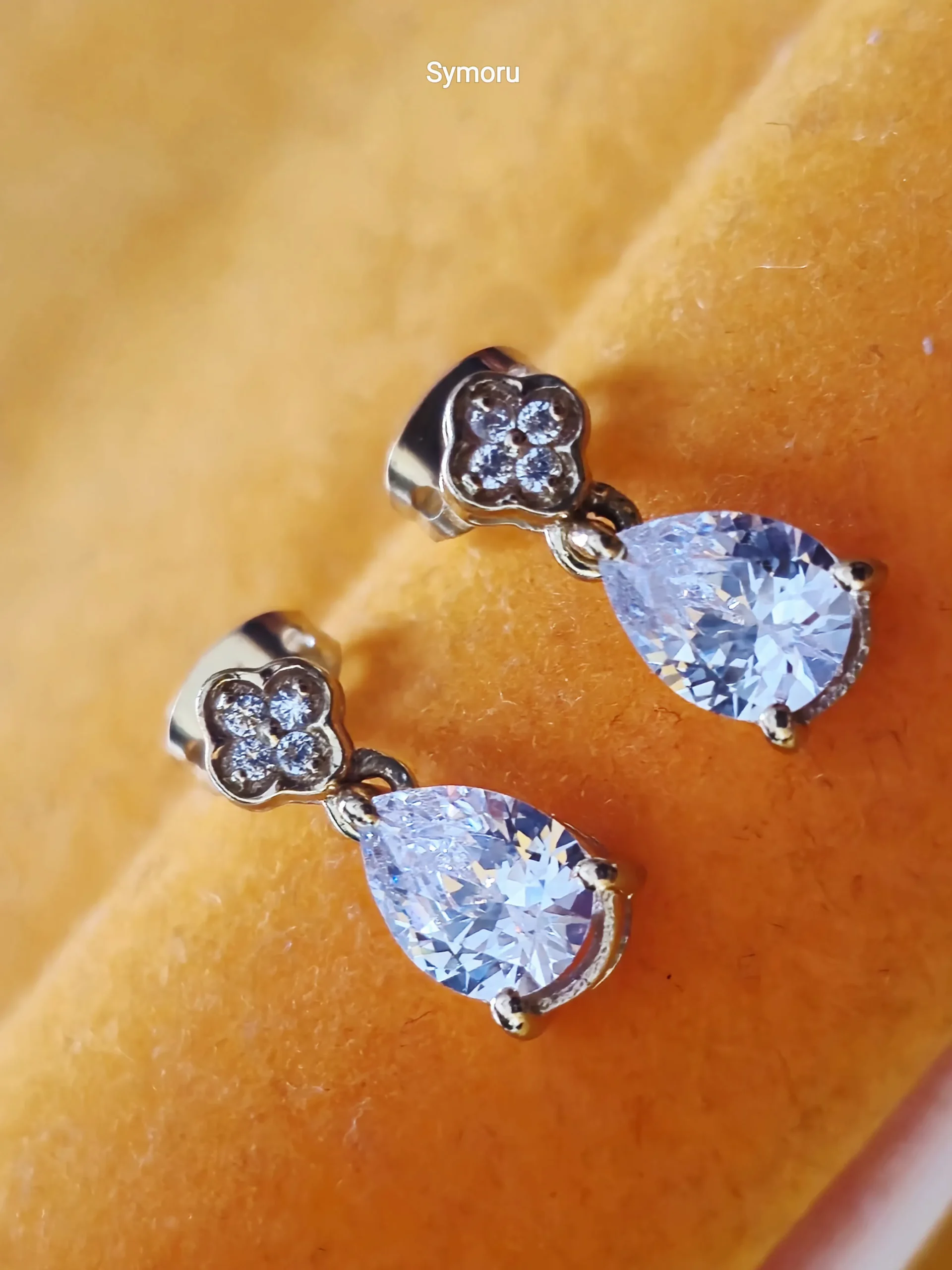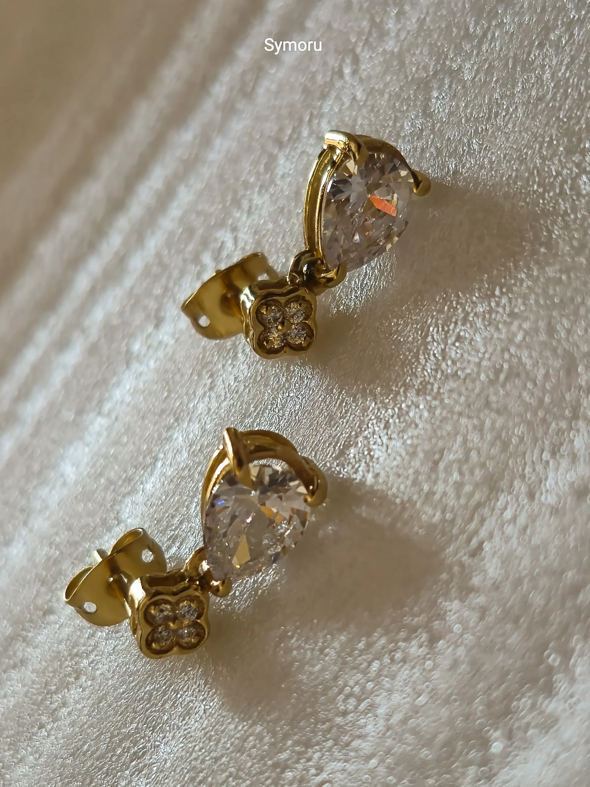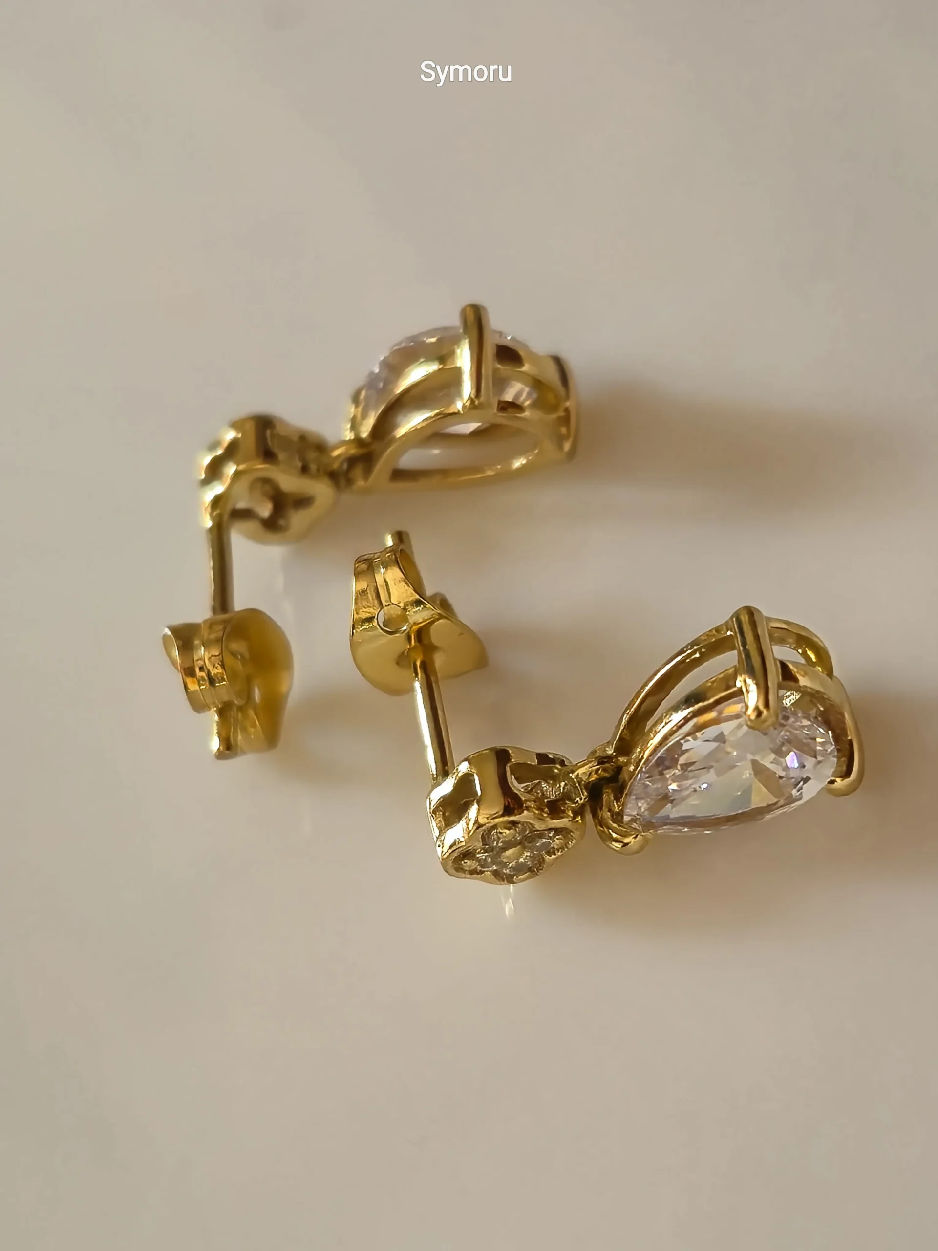 Be the first to review “Gold Tone Brass Floral Stud with Pear Cut CZ Drop Earrings | Elegant Diamond Look Teardrop Earrings for Women | Party & Bridal Jewelry by Symoru”