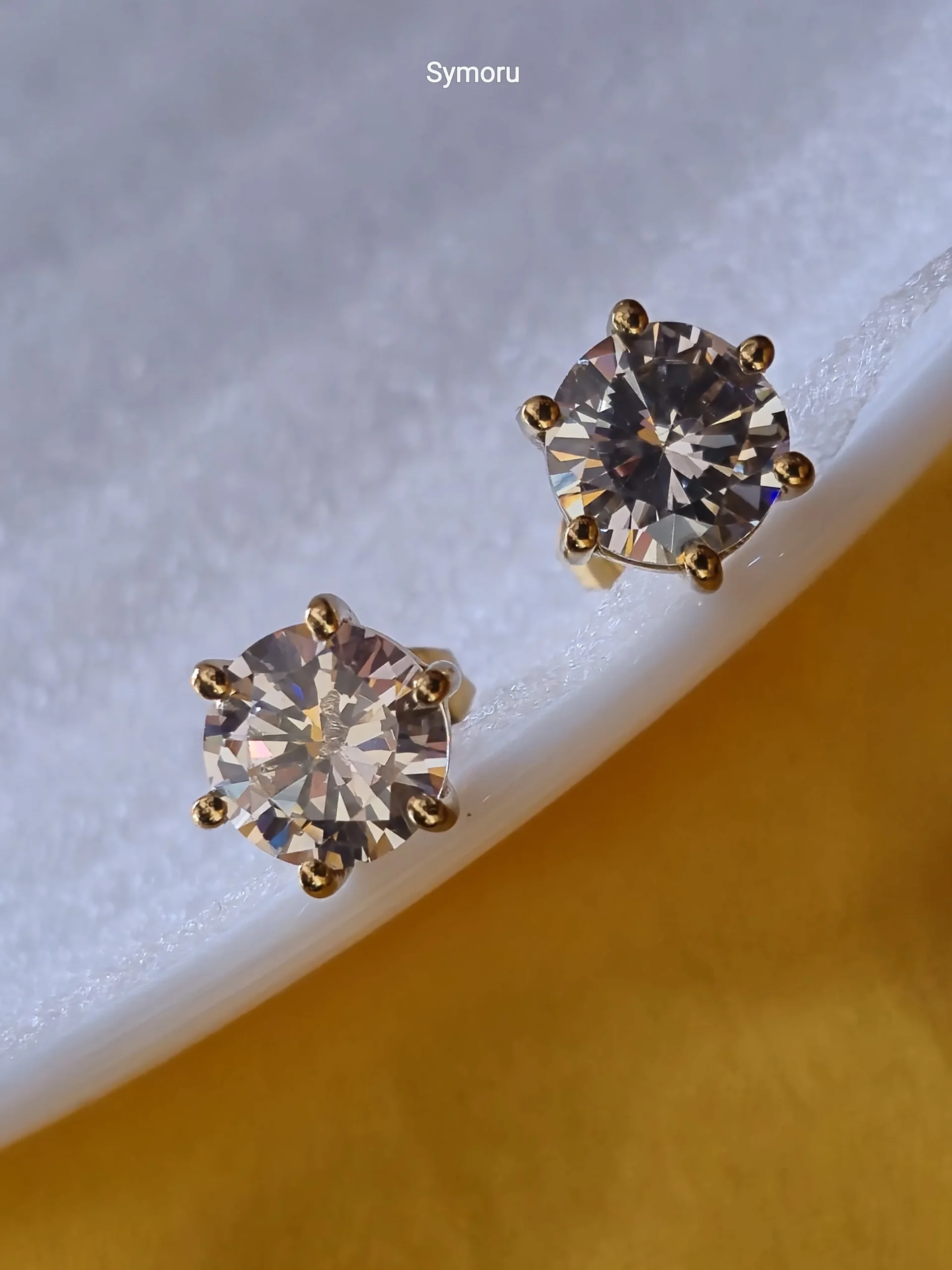 Enhance your everyday look with these classic gold-tone brass solitaire stud earrings from Symoru. Featuring a brilliant round-cut cubic zirconia set in a secure 4-prong basket setting, these earrings offer the timeless beauty of a diamond with lightweight comfort.