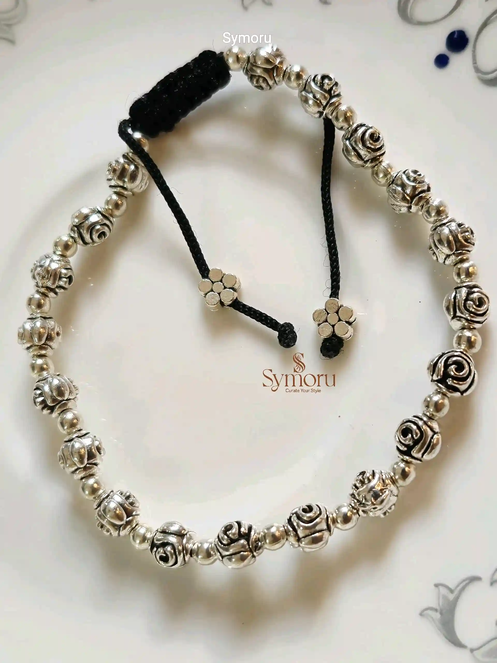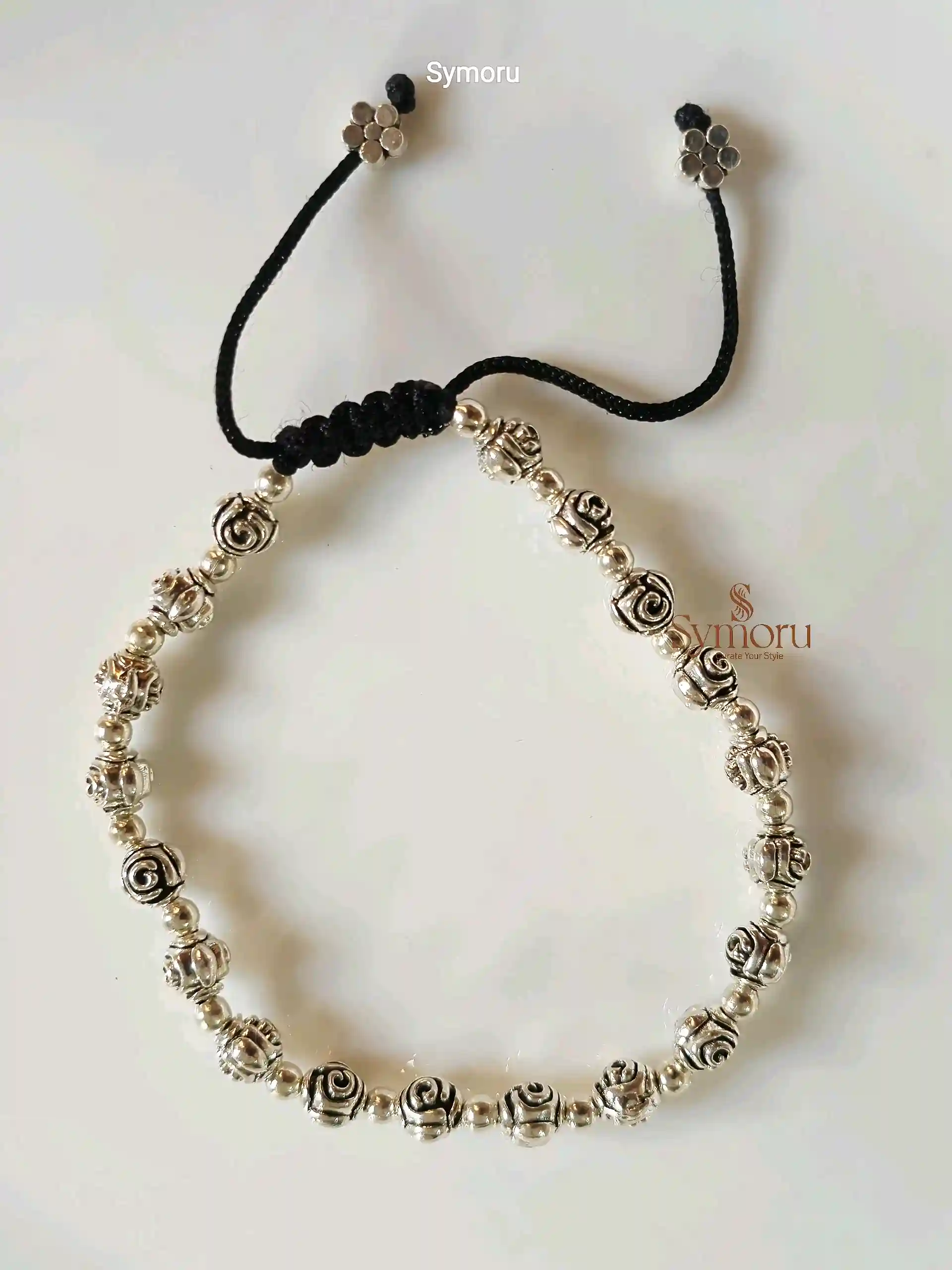 Elevate your style with this Handcrafted brass oxidized bracelet, designed with beautifully carved oxidized beads that bring a unique vintage charm. The bracelet features high-quality brass beads with antique-style detailing, paired with a durable black adjustable thread for a perfect and comfortable fit.