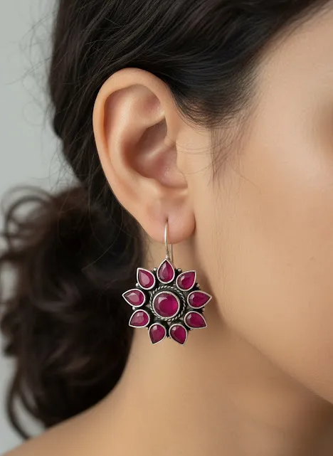 Be the first to review “Handcrafted Oxidized Brass Ruby Red Floral Drop Earrings | Vintage Boho Statement Earrings for Women | Ethnic Indian Jewelry”