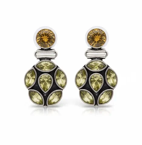 Add a touch of elegance to your look with these **Light Pink Crystal Stone Brass Jhumka Earrings**. Handcrafted with care, these earrings feature a teardrop-shaped pink crystal stone set in oxidized brass, paired with intricately carved jhumka domes adorned with tiny pearl drops. The combination of soft pink hues and antique silver detailing makes these earrings perfect for festive occasions, ethnic wear, or as a standout accessory for everyday elegance.