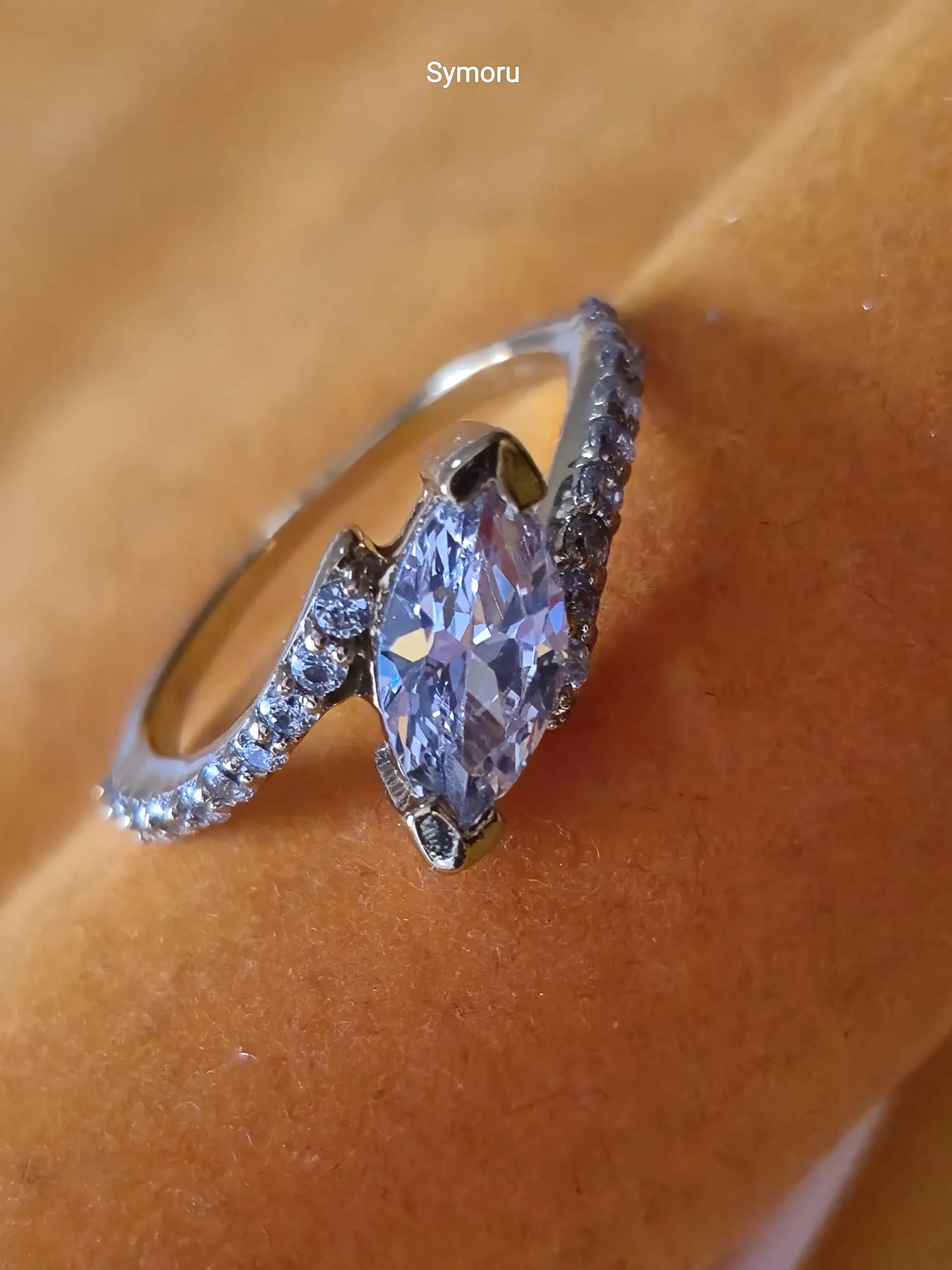 This stunning Symoru Marquise Solitaire Ring features a brilliant marquise-cut cubic zirconia held in a graceful curved prong setting. The band is adorned with shimmering micro CZ stones that enhance the sparkle and give the ring a premium diamond look.