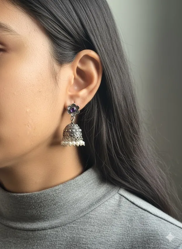 * Floral stud with traditional jhumka design