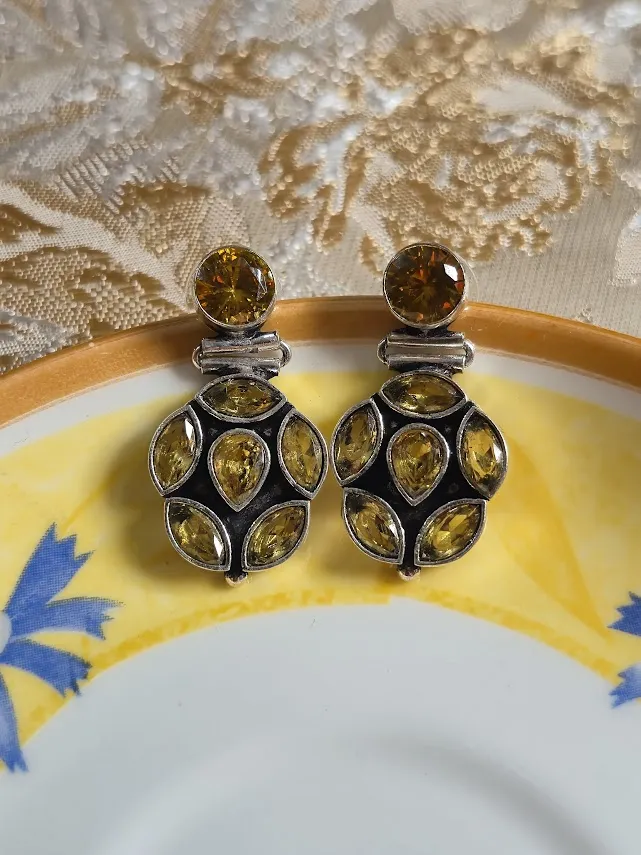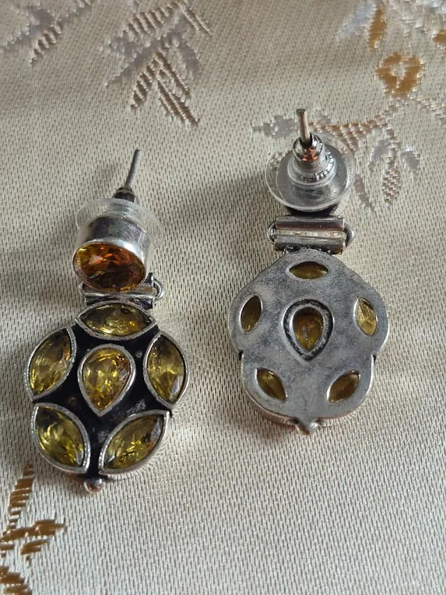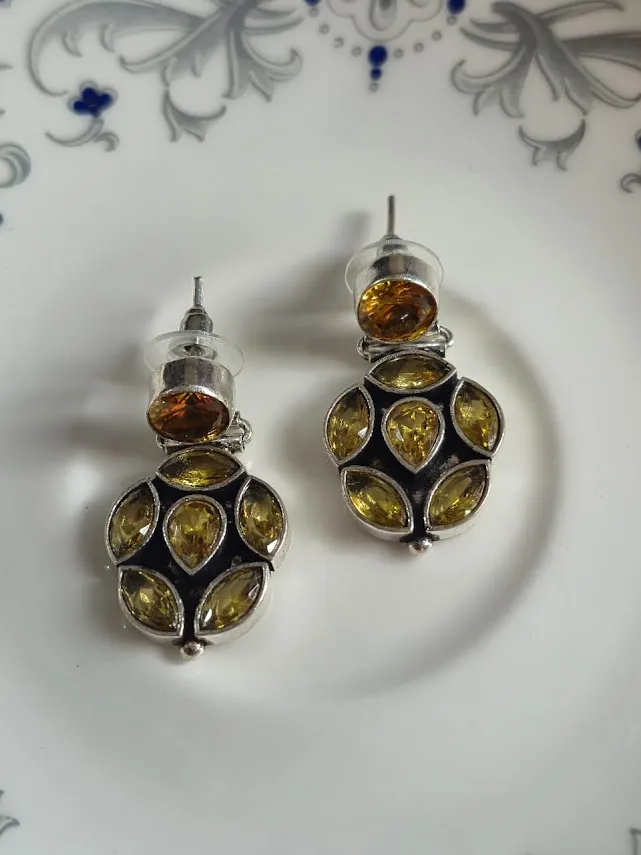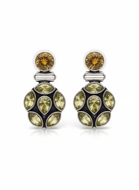 The oxidized silver finish adds a vintage appeal, while the sparkling green and gold stones reflect light beautifully, making these earrings ideal for Festive occasions, parties, weddings, and evening wear. Lightweight yet eye-catching, they are designed for comfortable all-day wear.