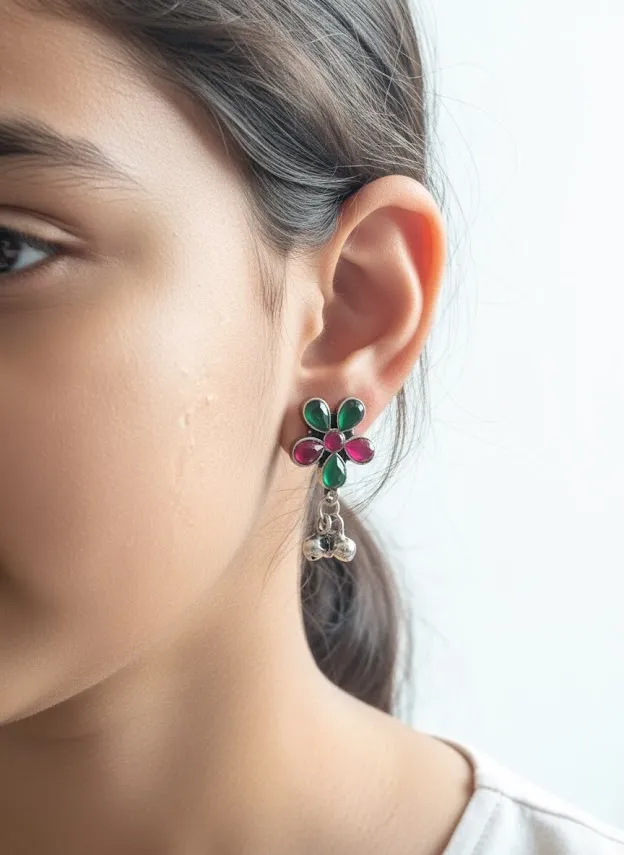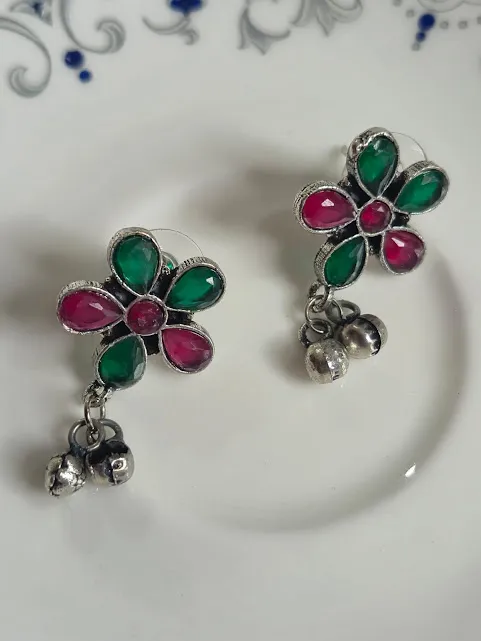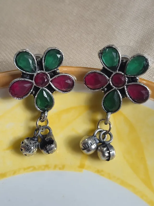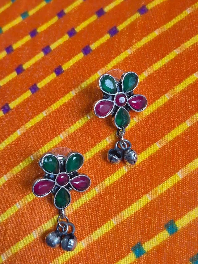 ✔ 1 × Oxidized Brass Multicolor Floral Earrings with Ghungroo Drops