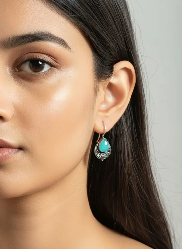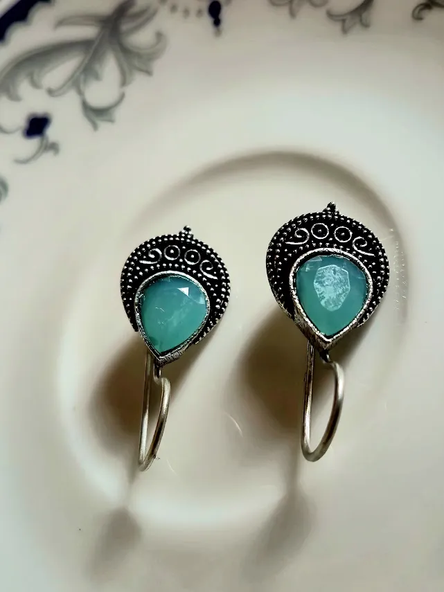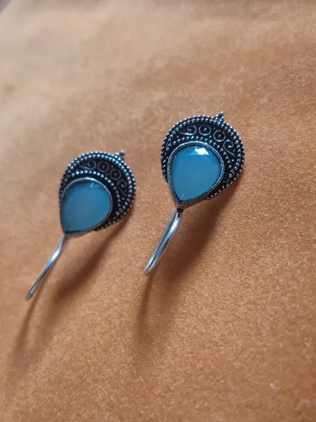 Be the first to review “Oxidized Brass Teardrop Earrings with Aqua Blue Stone | Handmade Tribal Drop Earrings for Women | Boho Ethnic Jewelry Gift”