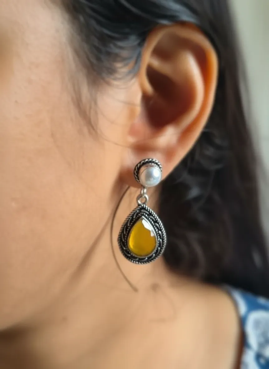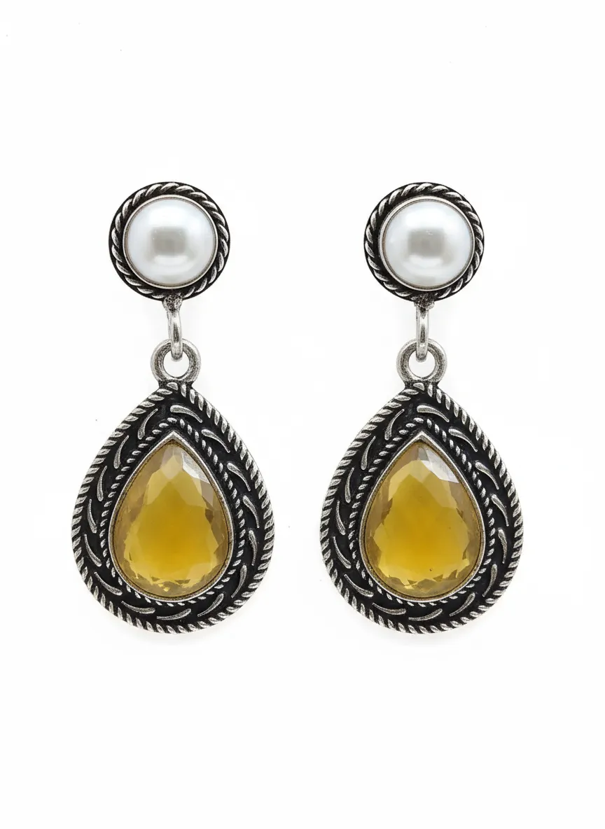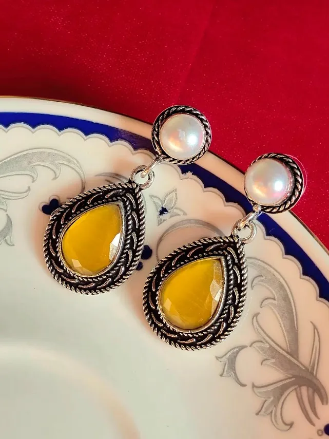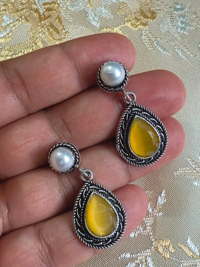 The antique oxidized silver finish enhances the depth of the Yellow stone, making these earrings perfect for Festive wear, weddings, parties, and everyday ethnic styling. Lightweight and comfortable, they are designed for long wear without discomfort.