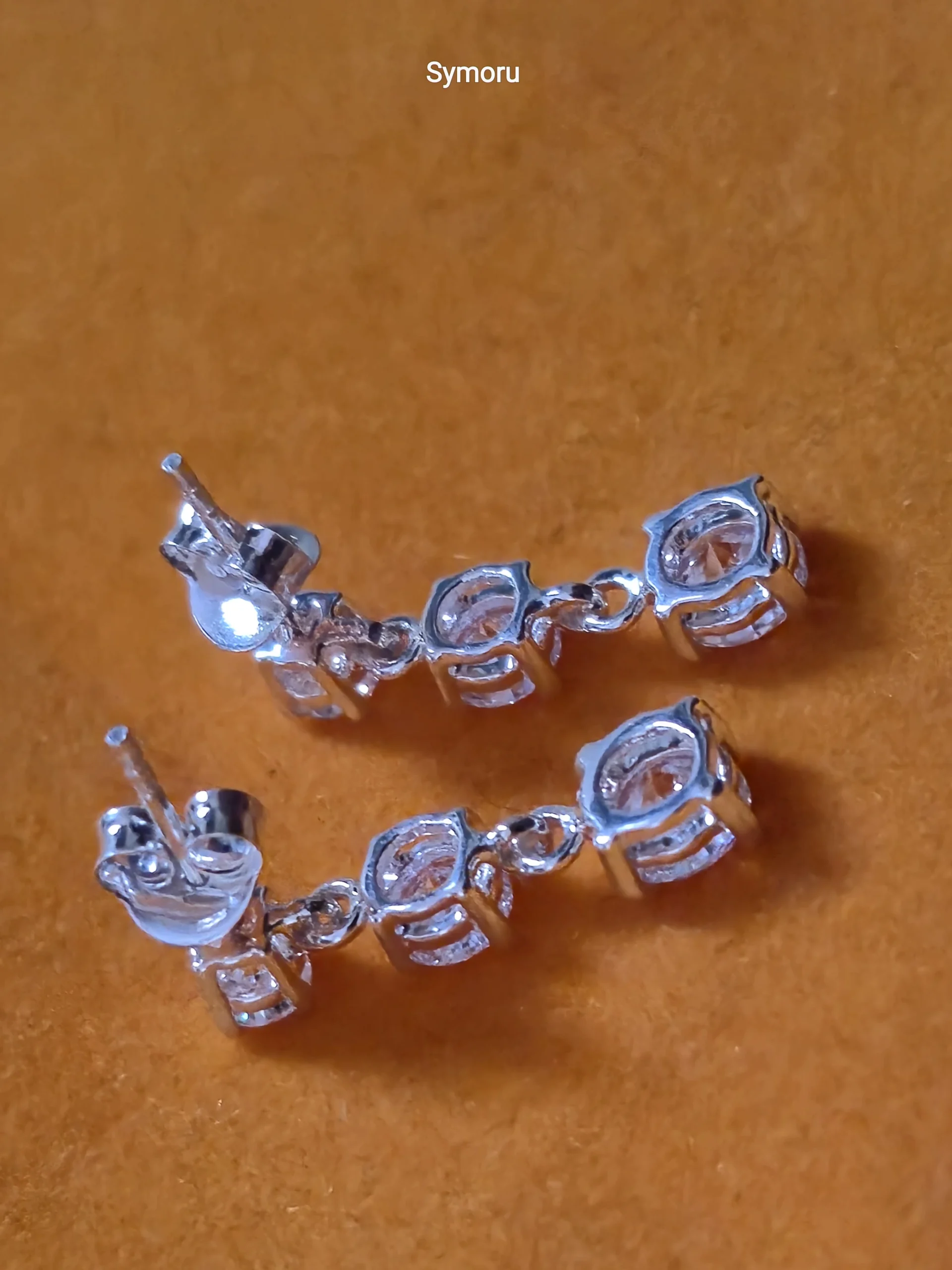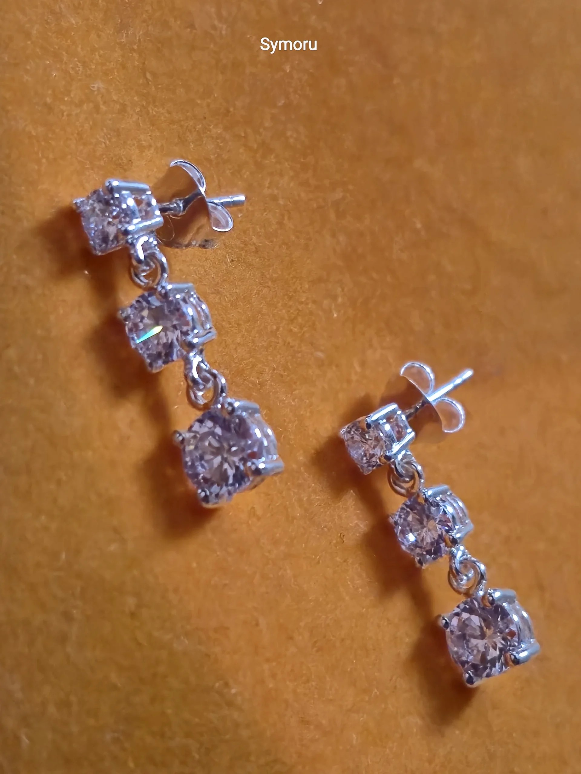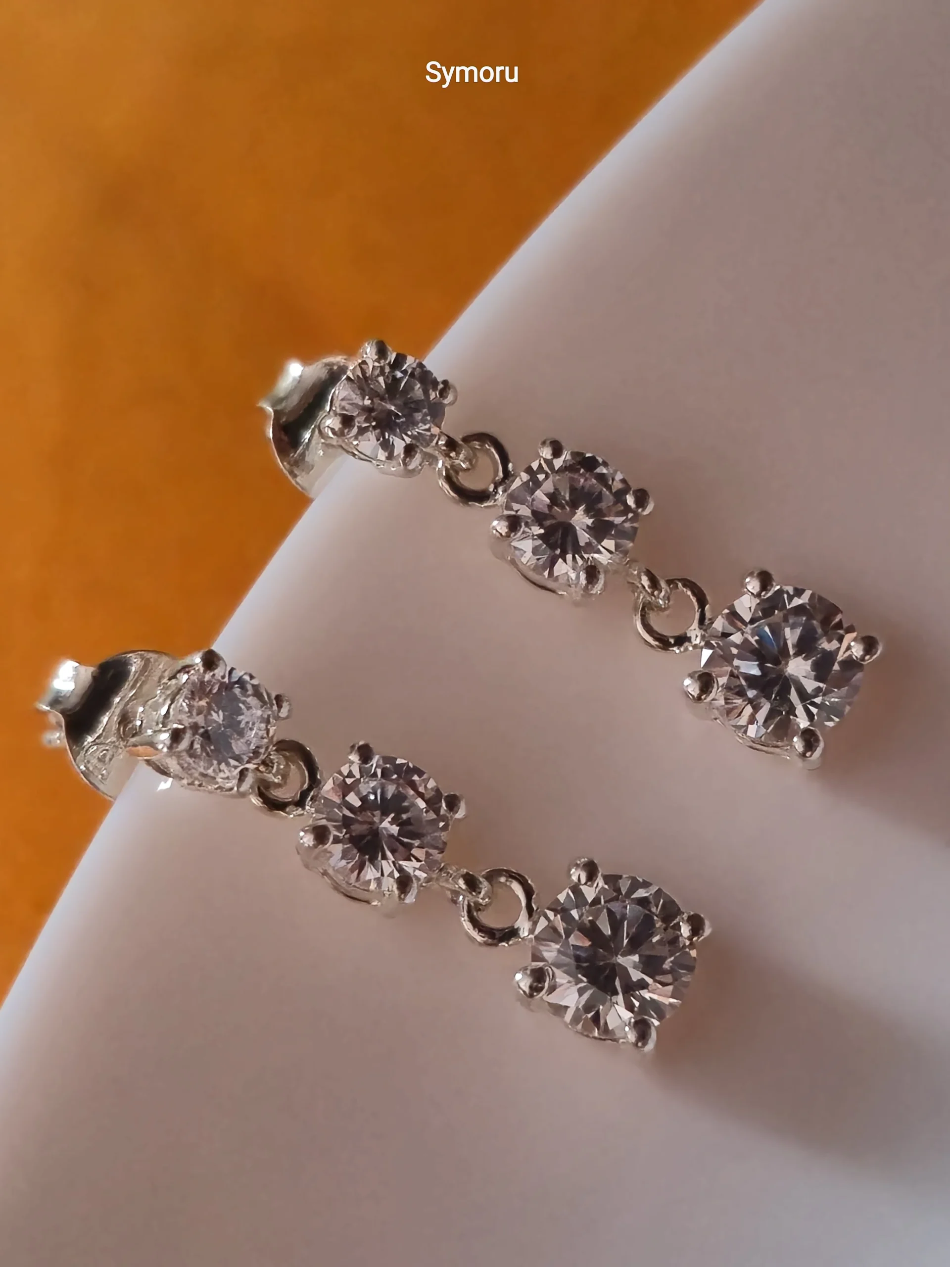925 Sterling Silver CZ Three-Stone Drop Earrings | Elegant Silver Stud Dangle Earrings for Women | Minimalist Sparkle Jewelry by Symoru