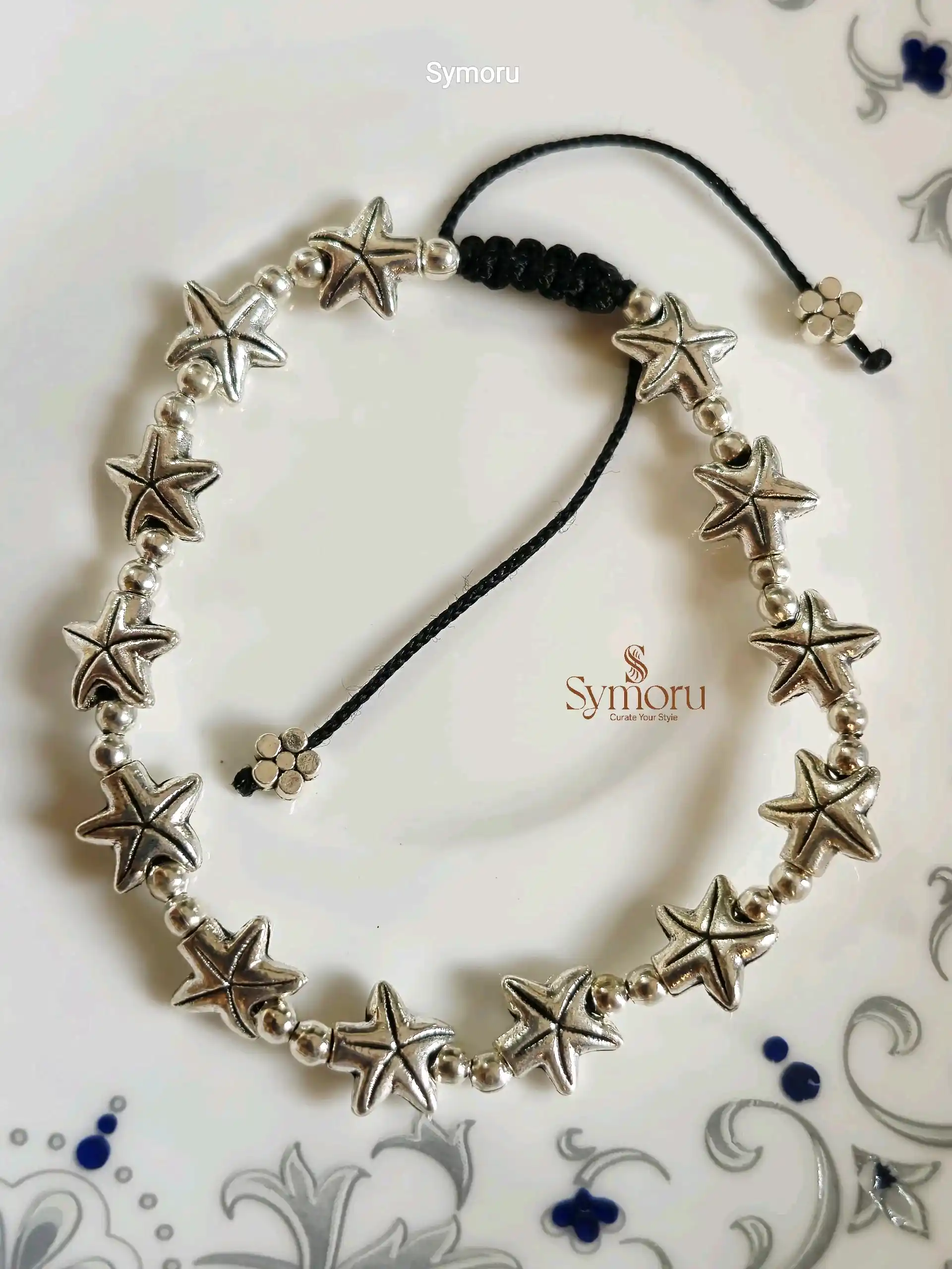 * Material:- Oxidized brass star beads, brass spacer beads, durable adjustable cord