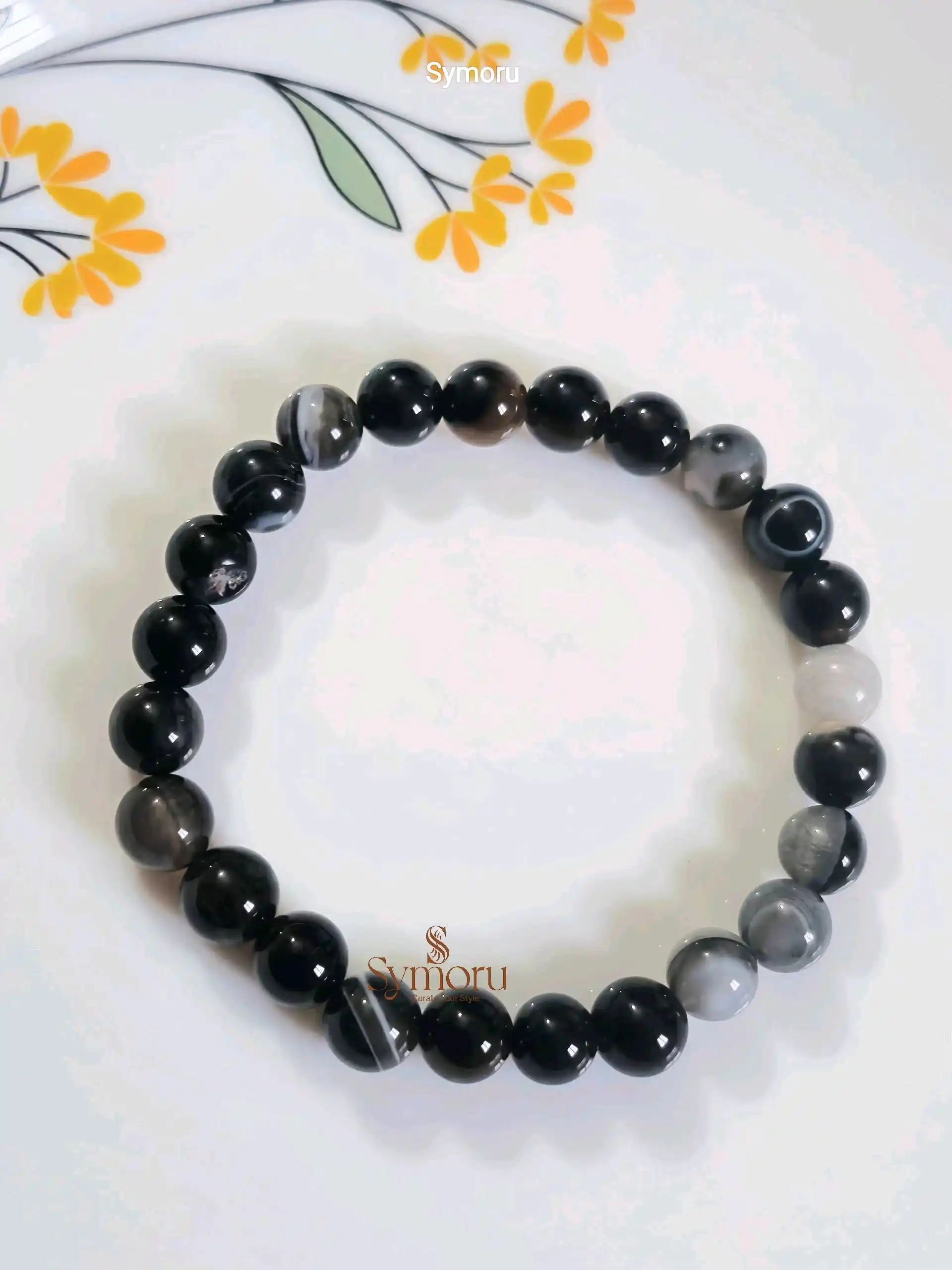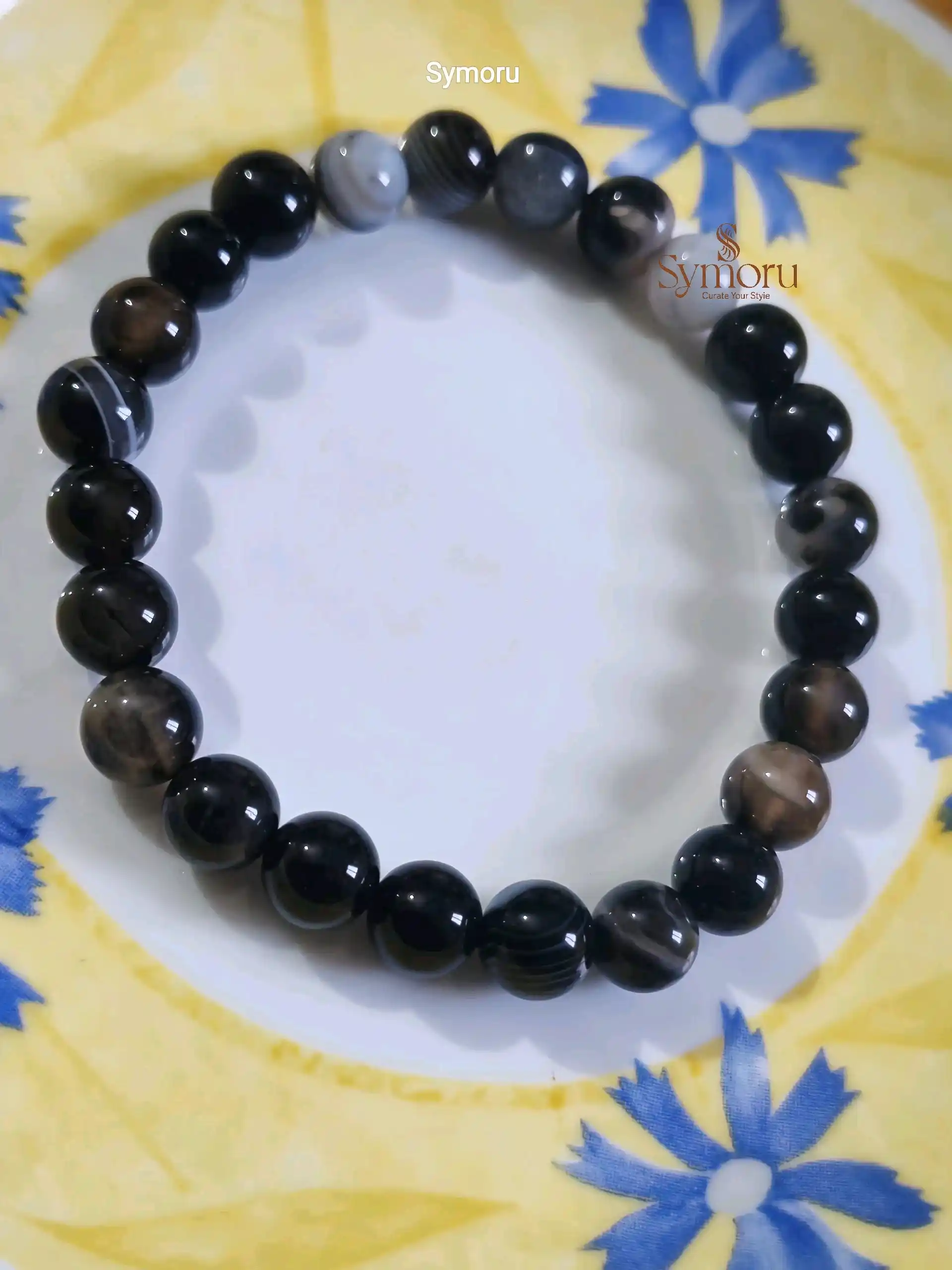 Sulemani Hakik (Black Agate) Natural Stone Bracelet – Energy Healing & Protection | Unisex Gemstone Beaded Bracelet | Symoru Jewelry