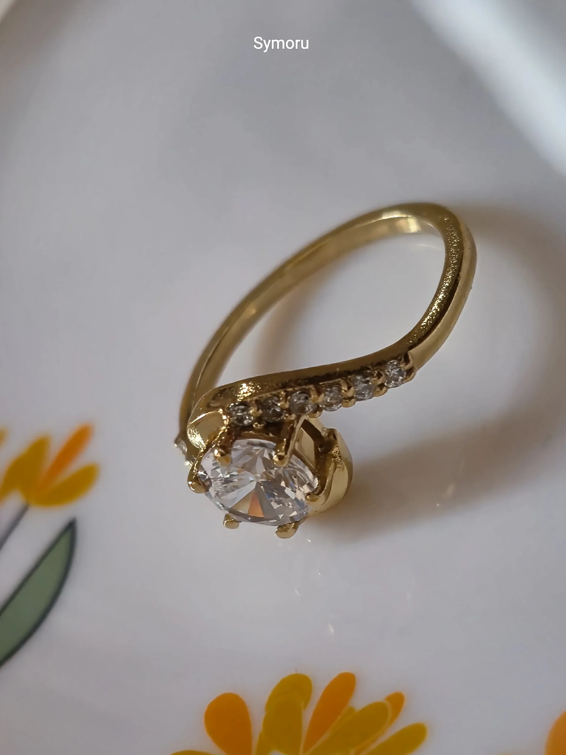 Swirl Solitaire Cubic Zirconia Gold Plated for Women | Diamond Look Engagement Ring | Symoru