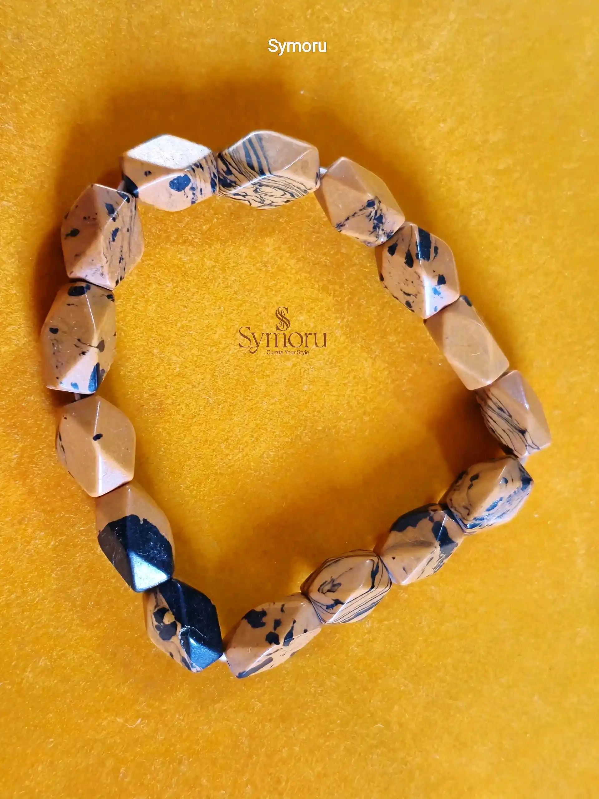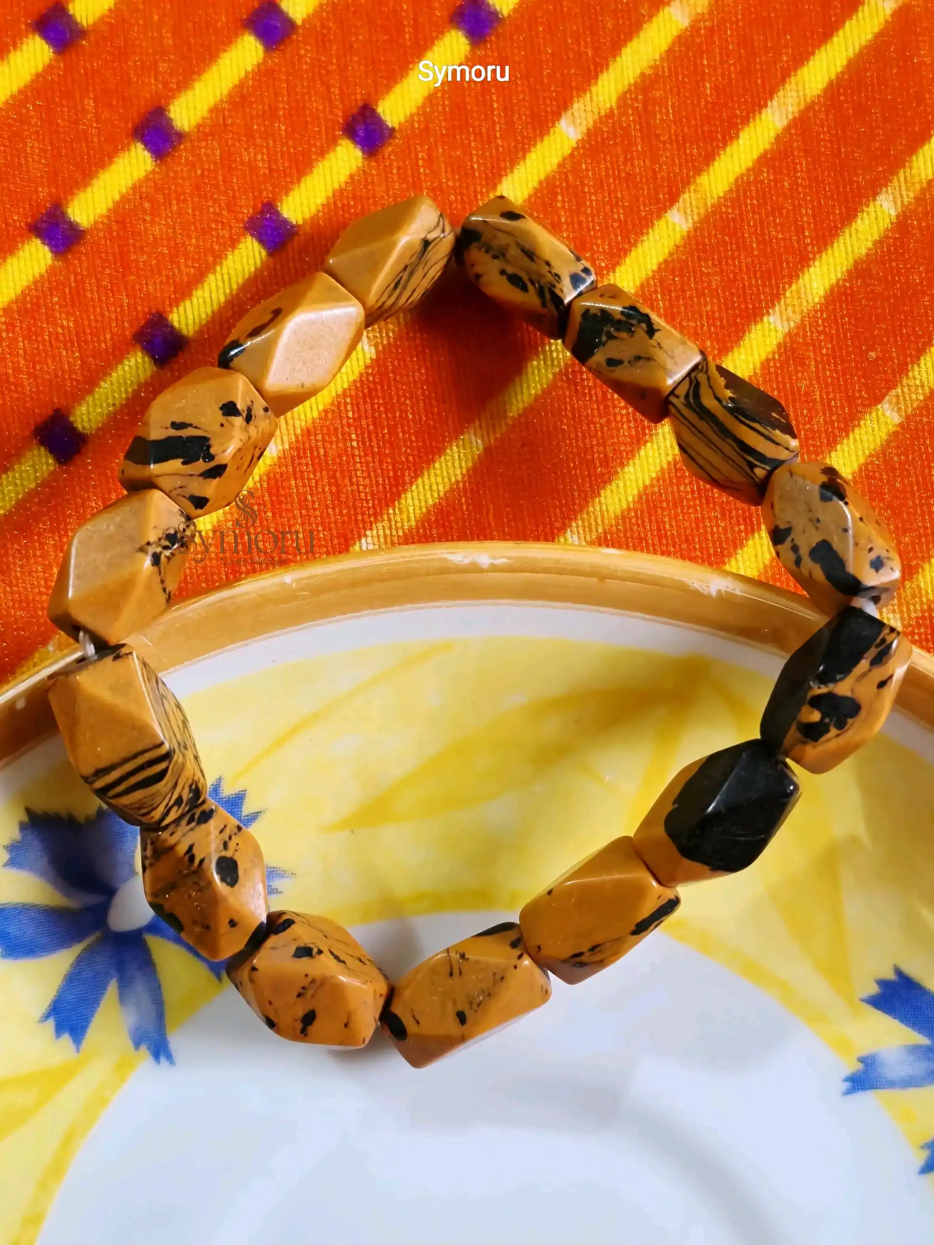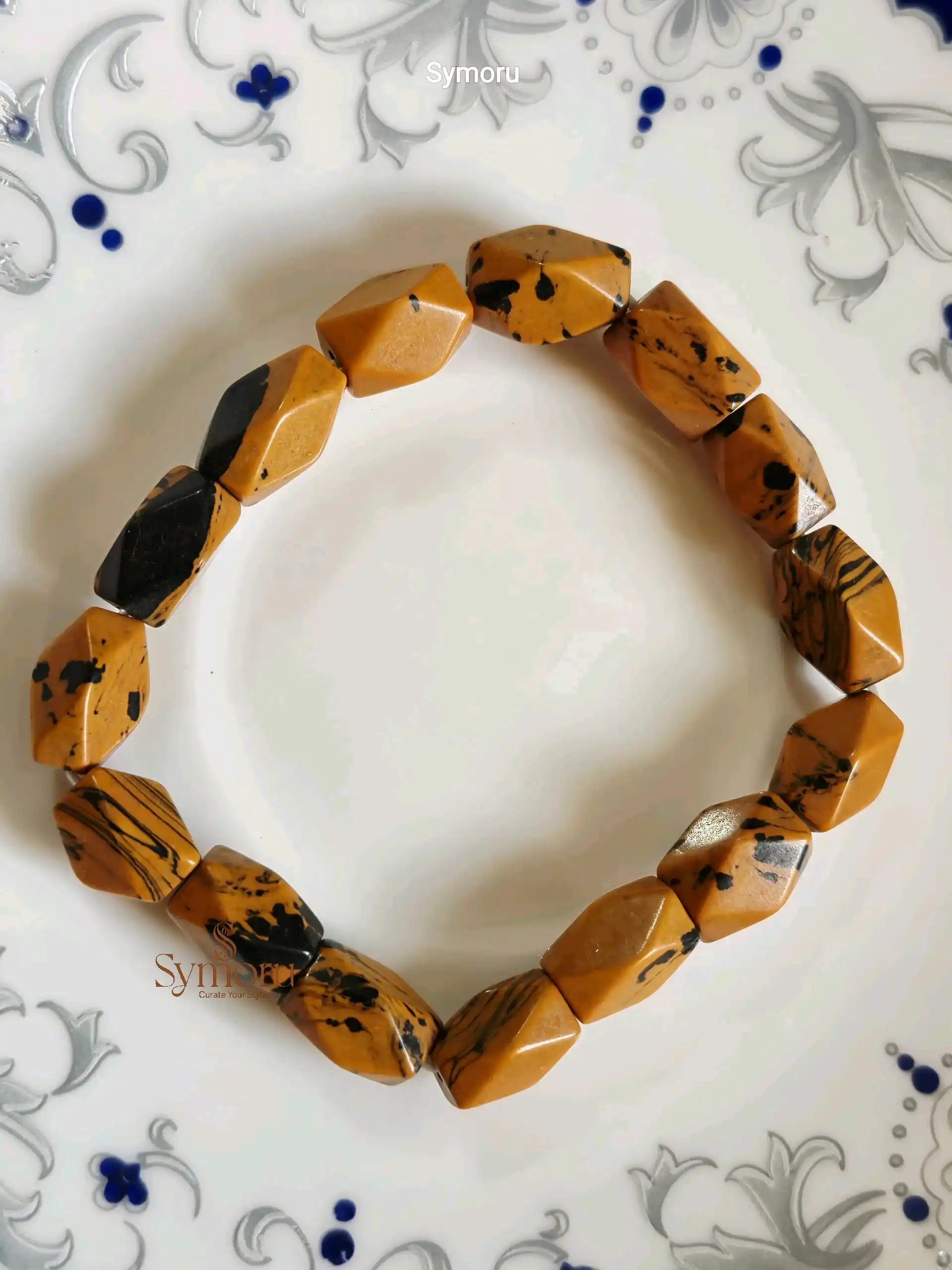 Elevate your style with this bold and vibrant Bumblebee Jasper Bracelet from Symoru. Crafted with beautifully polished geometric beads, this bracelet showcases the stone’s natural blend of Yellow, orange, and black patterns, making each piece truly one-of-a-kind.