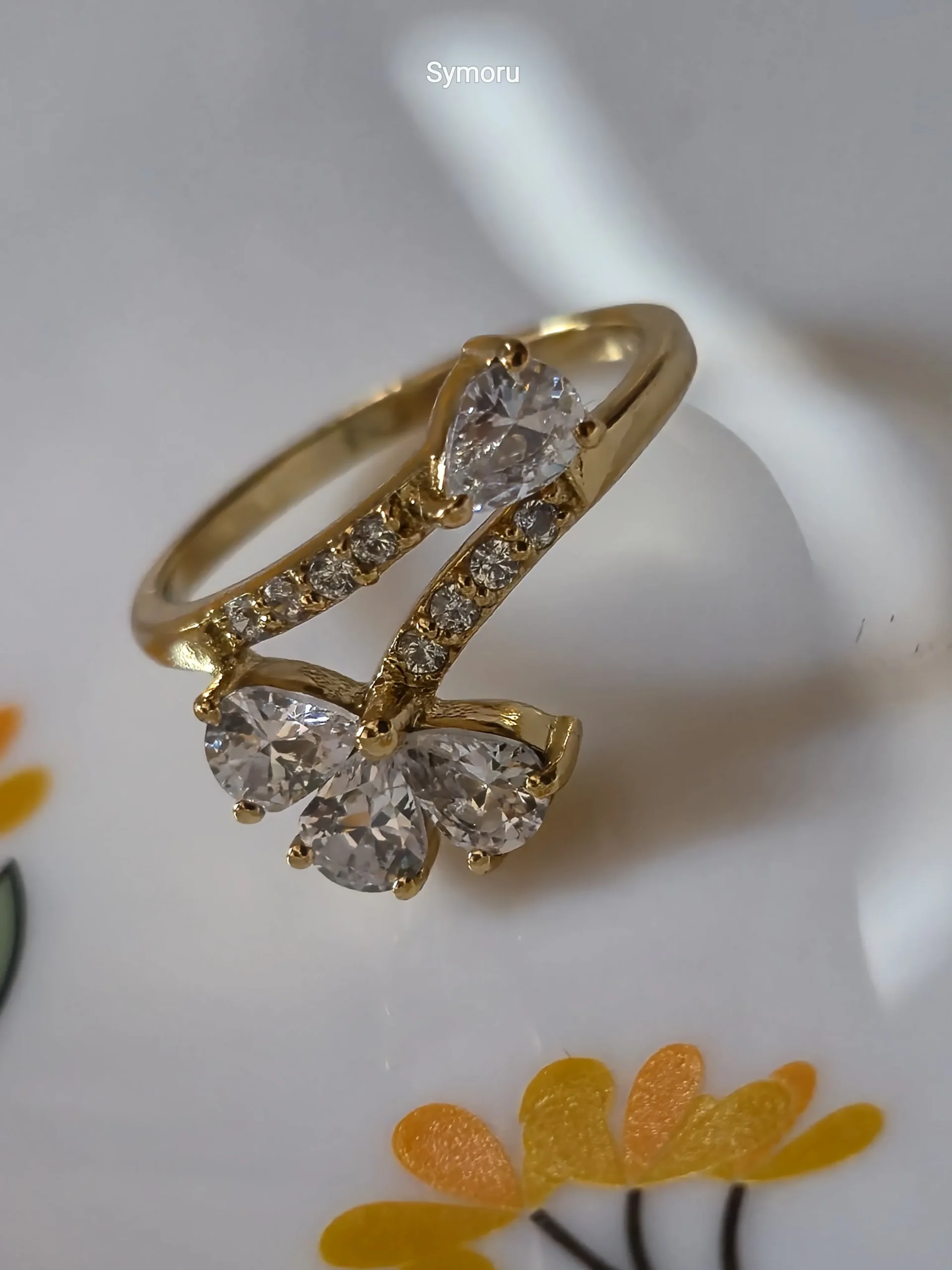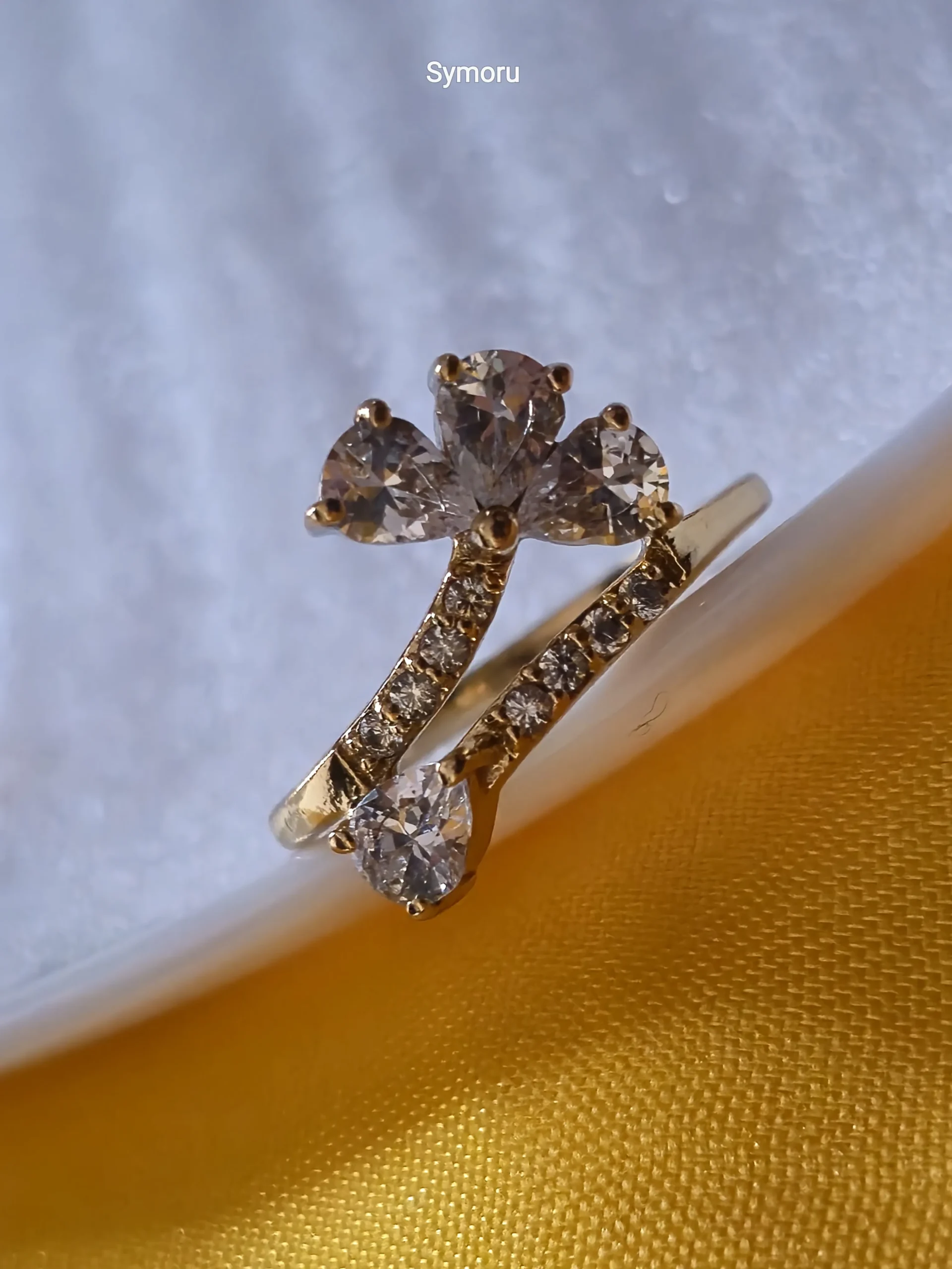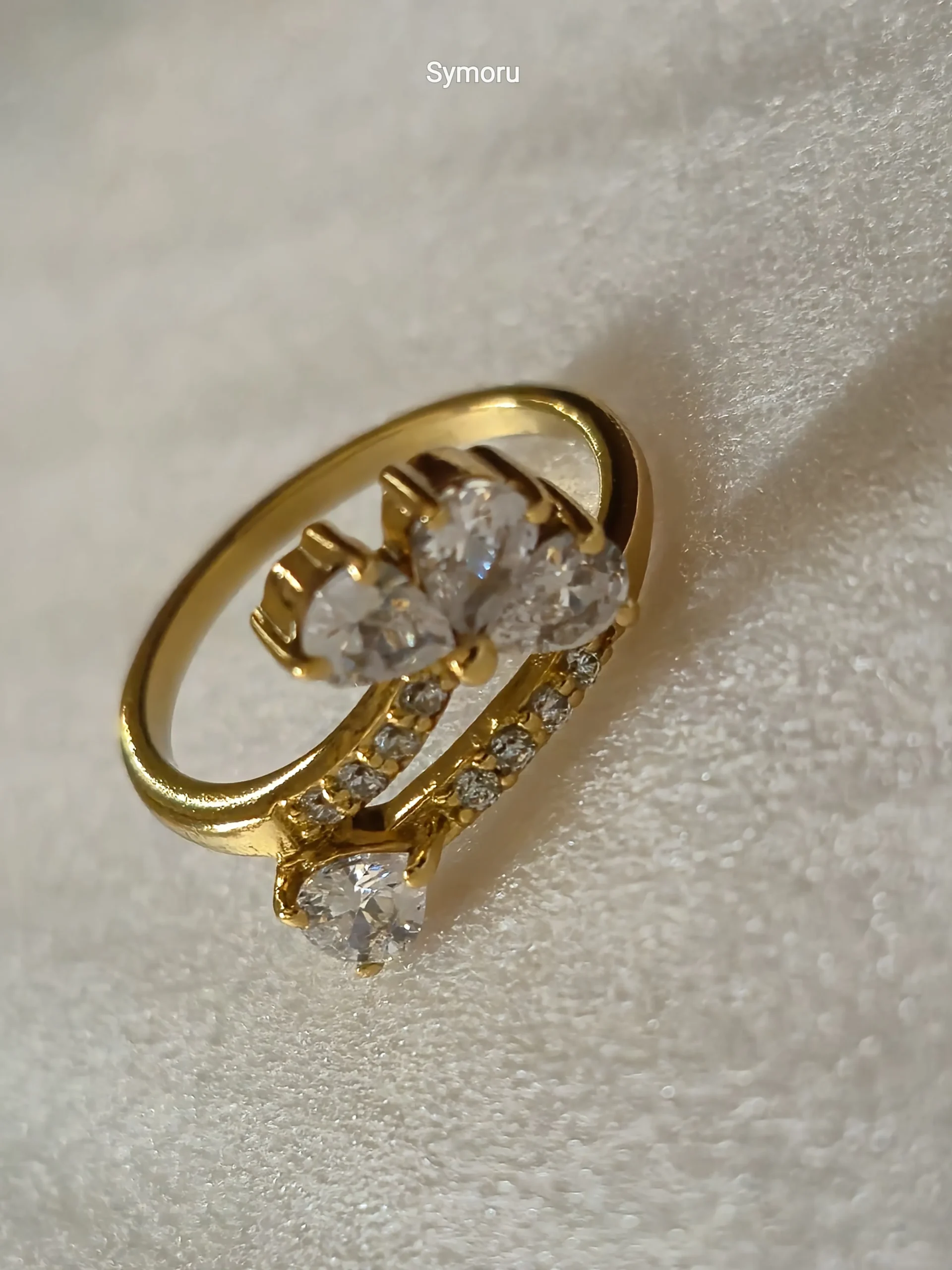 Three Stone Cubic Zirconia Gold Ring for Women | Diamond Look Trilogy Engagement Ring | Symoru