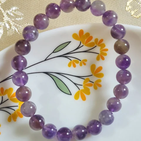 Symoru Natural Amethyst Crystal Bracelet – 8mm Beads | Healing Stone Bracelet | Spiritual Protection Jewelry | Meditation & Chakra Balancing